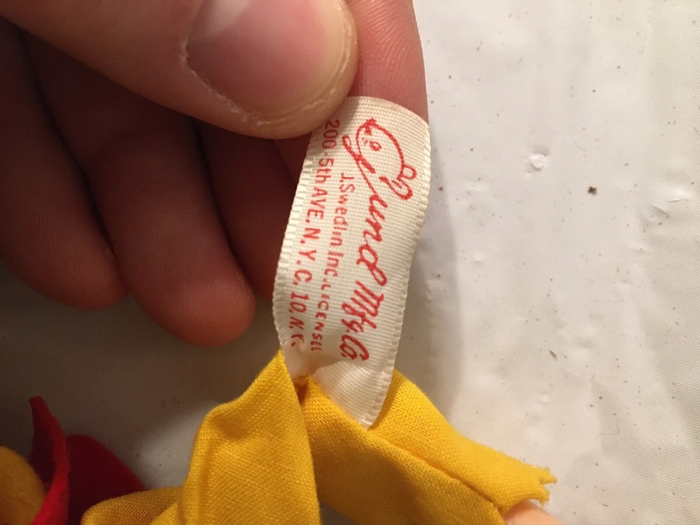 This vintage Disney Gund puppet toy set features Donald Duck and Mickey Mouse, both beloved characters from the Disney franchise. These plush toys are designed in collaboration with Walt Disney Productions (W.D.P.), adding to their collectible value. The puppets showcase the iconic charm and whimsy of these classic Disney characters, making them a delightful addition to any Disneyana collection.