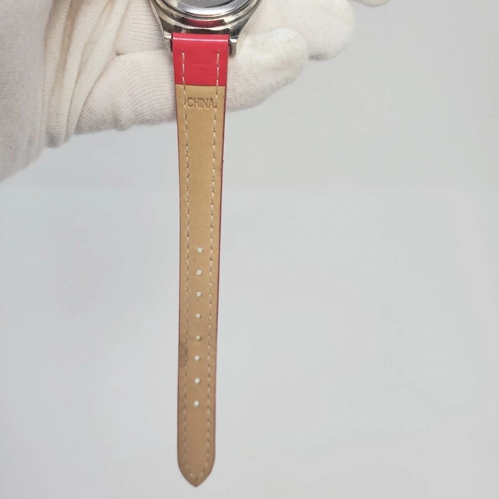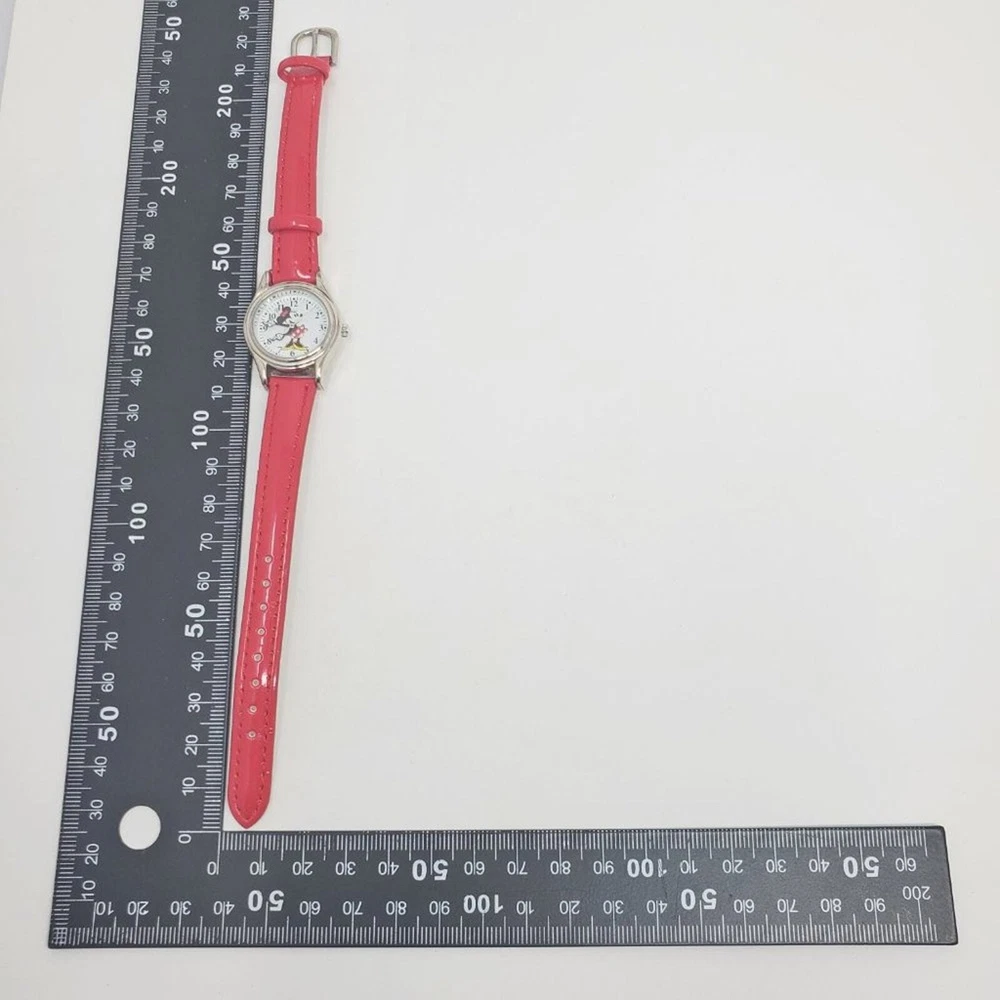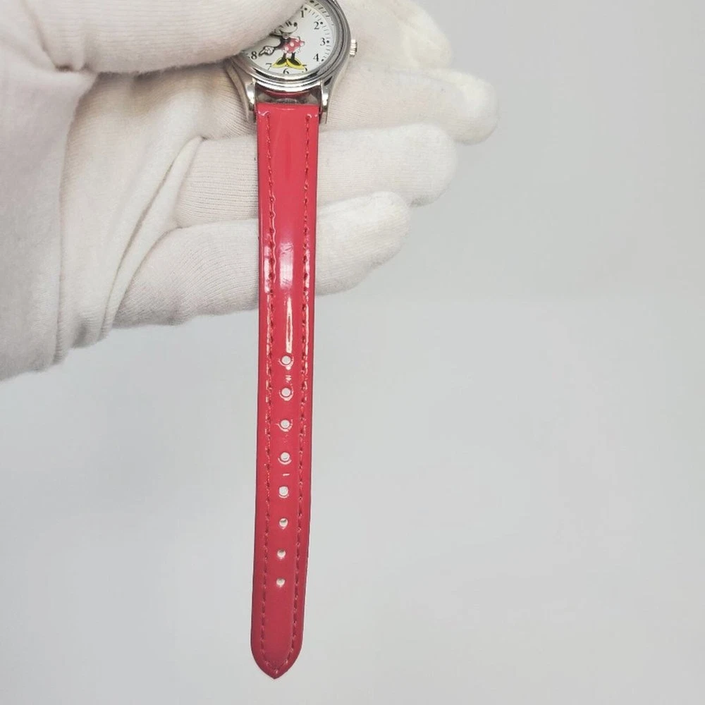 Make a magical statement with the Disney Minnie Mouse silver analog watch! Featuring Minnie Mouse in her classic red dress on a sleek silver-toned round face, this charming timepiece adds a touch of whimsy to any outfit. The shiny red leather-like band brings a fun and vibrant pop of color, making it perfect for Disney enthusiasts and collectors. With its timeless design, this watch is ideal for everyday wear or special occasions, bringing a smile to your face each time you glance at it. The watch is in excellent used condition (EUC), with a freshly installed battery, though accuracy has not been evaluated. Don’t miss out—order your Minnie Mouse watch today and let your style shine with Disney magic! Size: Measurements photographed are in Millimeters Condition: EUC The battery has been freshly installed and the watch is ticking, but it has not been evaluated for accuracy. Have a magical day Cat-friendly, smoke-free home.
