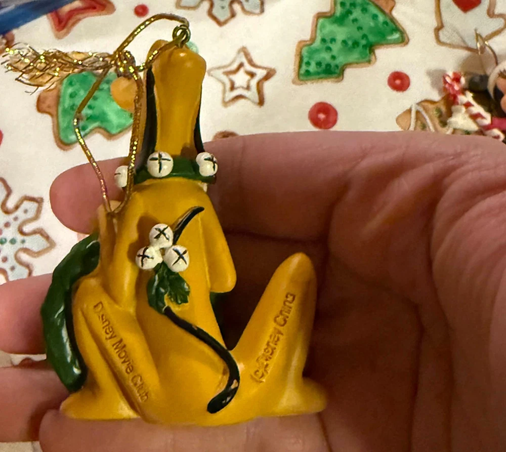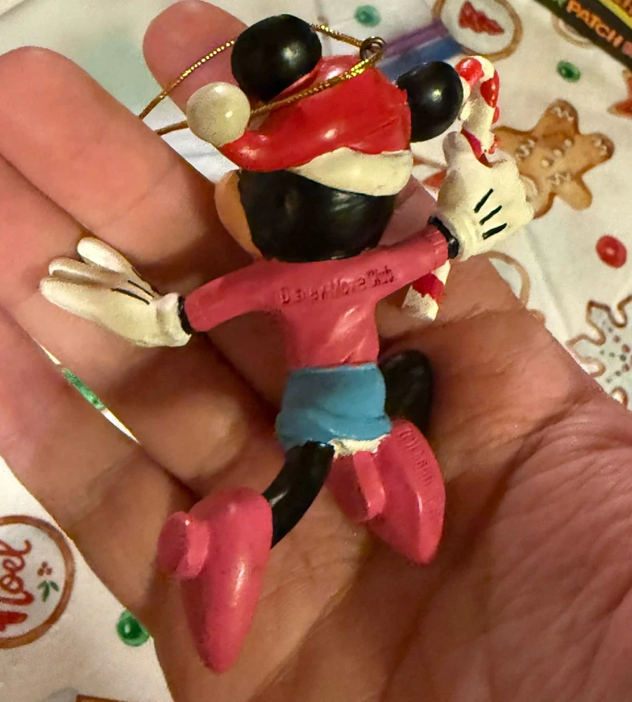 Set of three Disney Movie Club ornaments Please note that the candy cane that Mickey is supposed to be holding has broken off and is NOT INCLUDED. There is also some minor yellowing from the glue in the hand where the candy cane was. Minnie and Pluto are in flawless condition. This lot of vintage Disney movie club ornaments features iconic characters like Minnie Mouse, Mickey Mouse, and Pluto. Perfect for collectors or fans of Disney movies, these ornaments are a nostalgic addition to any holiday decor. Each ornament comes from the Disney franchise and is designed with a Christmas theme in mind, making them a unique and charming addition to your seasonal decorations.