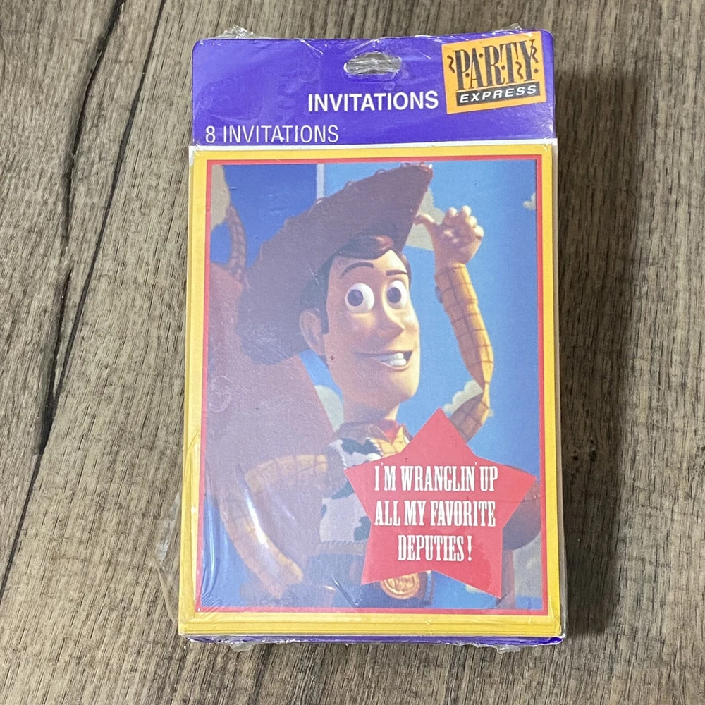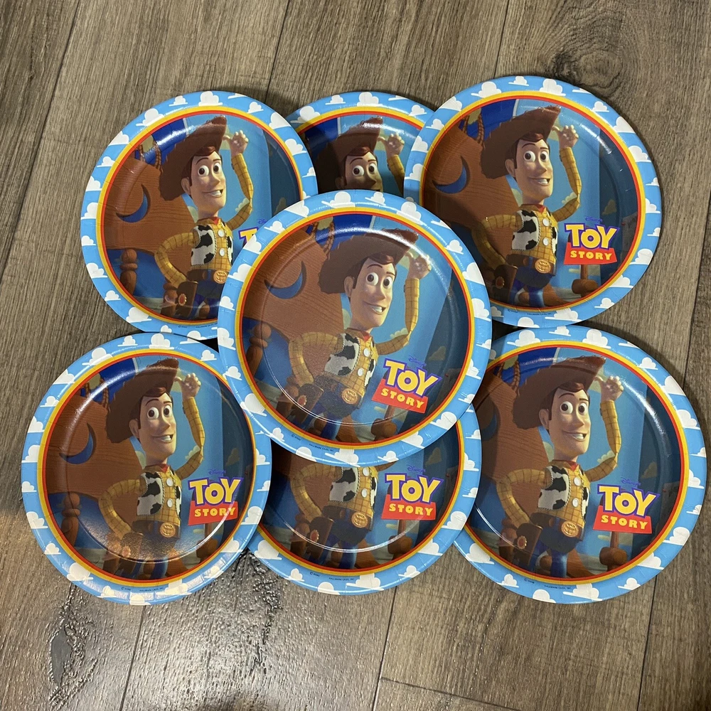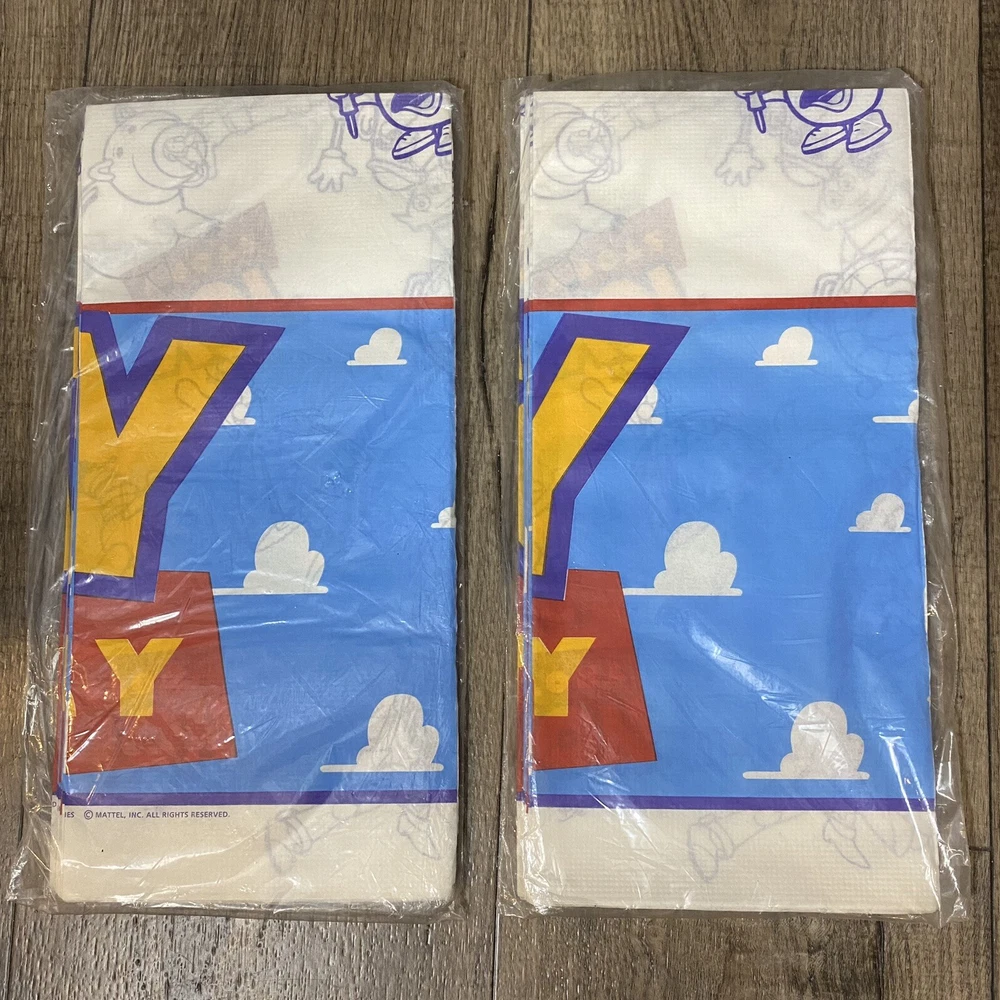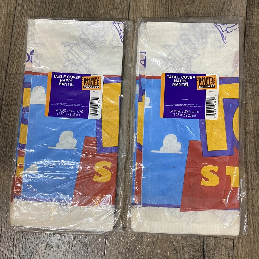 Vintage Disney Pixar Toy Story Party Pack Factory Sealed Package Hallmark 1995. You Story Set includes: 2 Factory Sealed Tablecloths 3 Factory sealed gift bags (8 each) 1 Factory Sealed napkins (16) 1 Factory Sealed invitations (8) 1 factory sealed party hats (8) 1 factory sealed plates (8) 1 open set of plates (7) Please see Pictures for all included and condition.