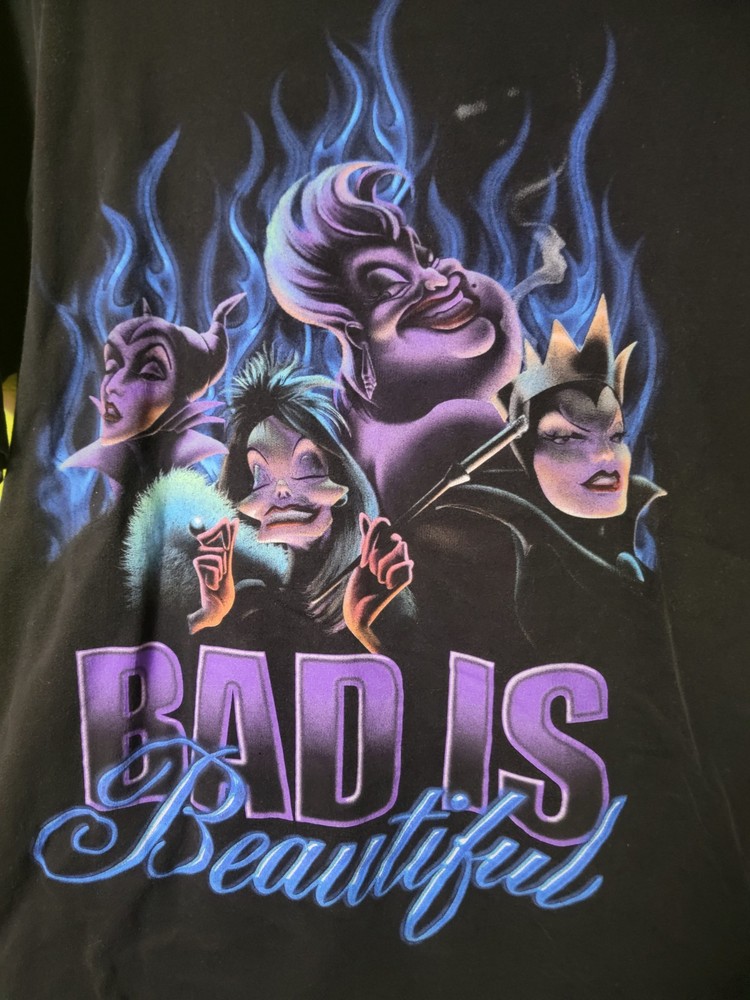 Fits a mens xl or women's 2xl See pictures for measurements and condition if applicable. Getting the item(s) as pictured. I generally have similar items so make a bundle I have extra automatic discounts for bundled items so grab a few things from me! The Vintage Disney Store Villains Bad Is Beautiful Graphic features iconic Disney villains such as Cruella, Evil Queen, and Ursula in a stylish design. This unisex black T-shirt is available in size XL and is perfect for Disneyana collectors or fans of the franchise. The shirt is suitable for adults and pays homage to the classic villain characters in a contemporary and fashionable way. Powered by ExportYourStore.com