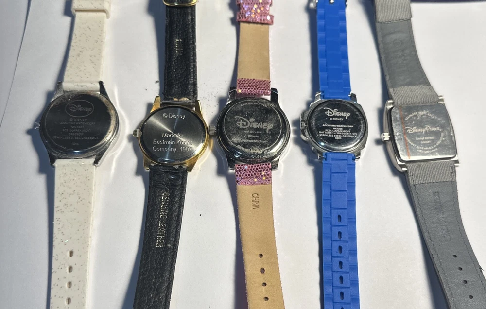 For collectors of vintage Disney merchandise, this lot of 5 wristwatches is a must-have. Featuring beloved characters such as Mickey Mouse and Olaf, these watches are perfect for fans of all ages. Each watch is unique and adds to the overall value of the collection. The watches are sold as-is and are sure to make a great addition to any Disneyana collection. Whether you're a seasoned collector or just starting out, this lot is a great find. Don't miss your chance to own these charming timepieces! Most just need a battery Some damage to bands. Selling as is- not tested.
