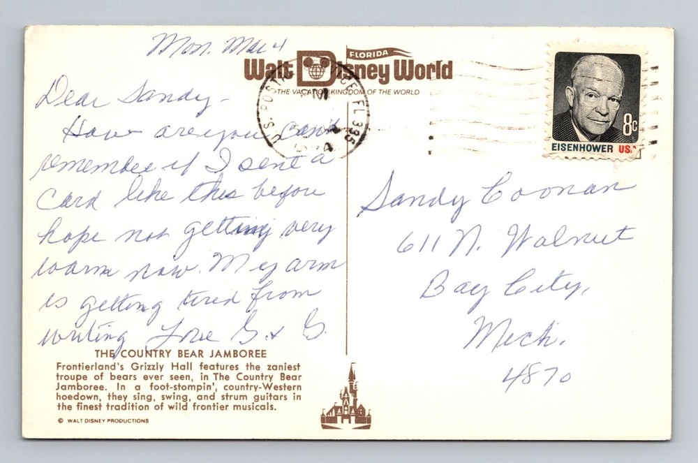 This vintage Disney World postcard is a charming piece of nostalgia! The Country Bear Jamboree artwork brings back great memories, and the seller ships carefully—packed in a sturdy mailer with a protective sleeve. Perfect for collectors or Disney fans, plus combined shipping makes it easy to grab more treasures. Highly recommend!