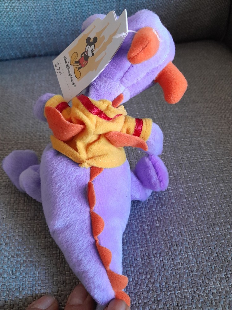 Introducing a vintage Walt Disney World Figment 7" Bean Bag Plush, perfect for any Disney enthusiast! This plush toy features Figment, a beloved character from the Disney franchise, and is made in China with high-quality materials. It is a great addition to any collection, whether you are a fan of contemporary or vintage Disneyana. This item is authentic and comes with tags, making it a perfect gift for any collector or fan of Disney. Don't miss out on the opportunity to add this unique and rare piece to your collection.
