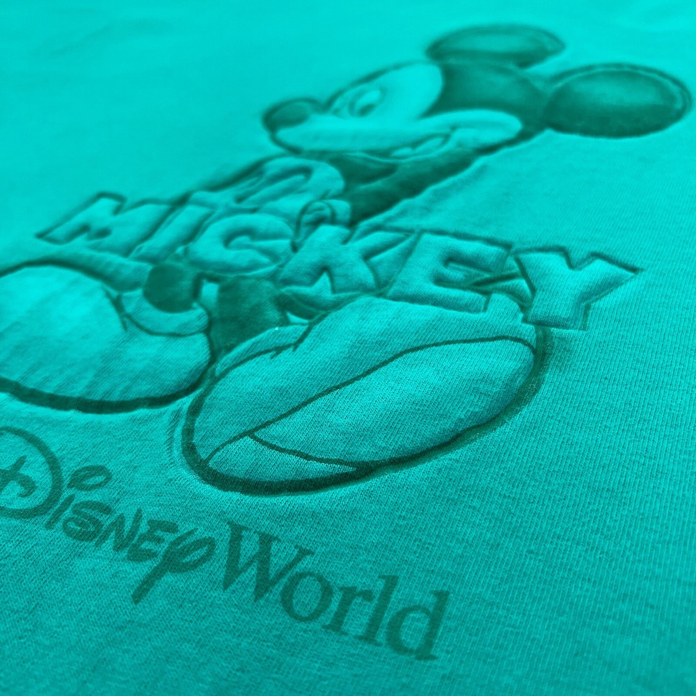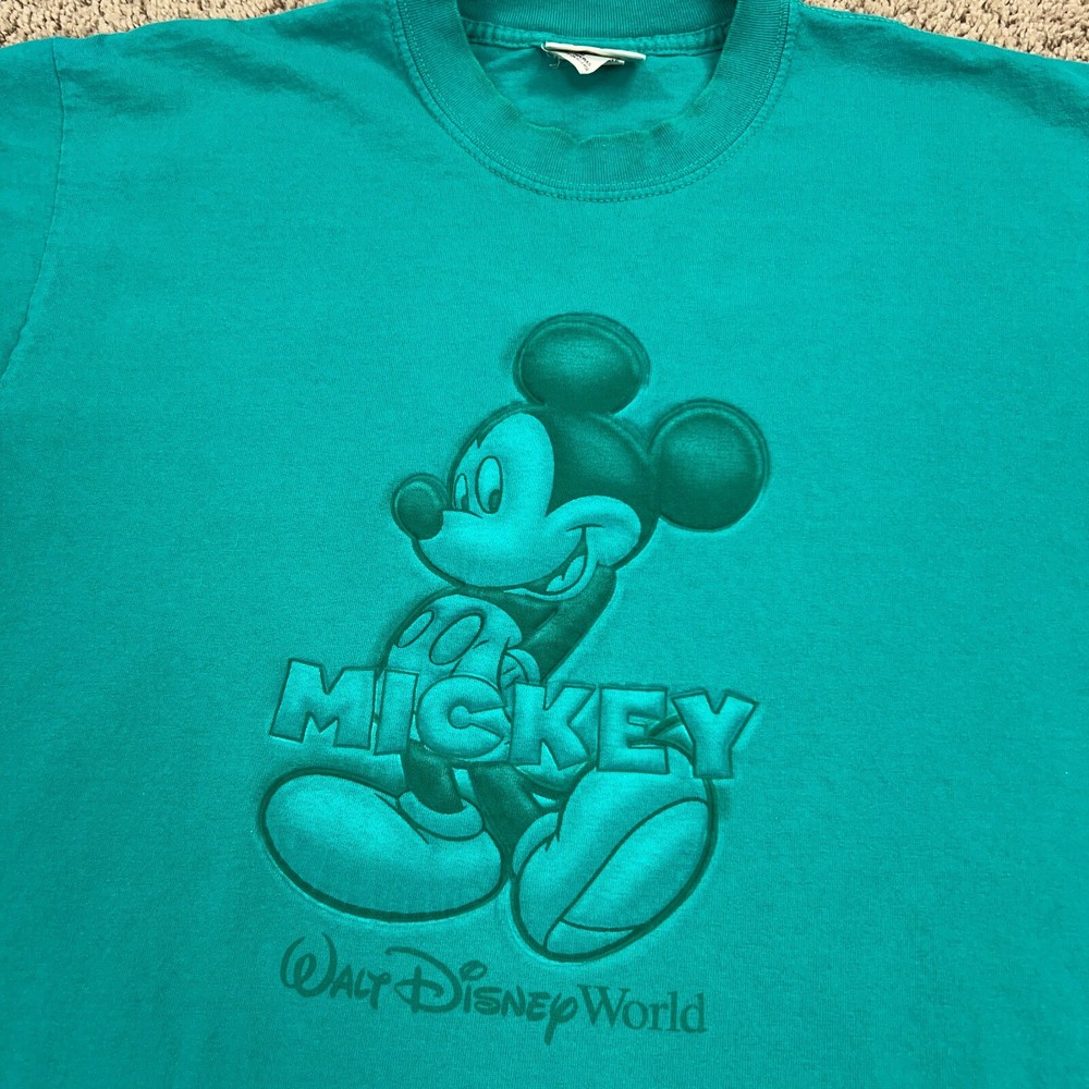 Vintage Disney World Mickey Mouse Embossed Tee Adult Medium Green Blue