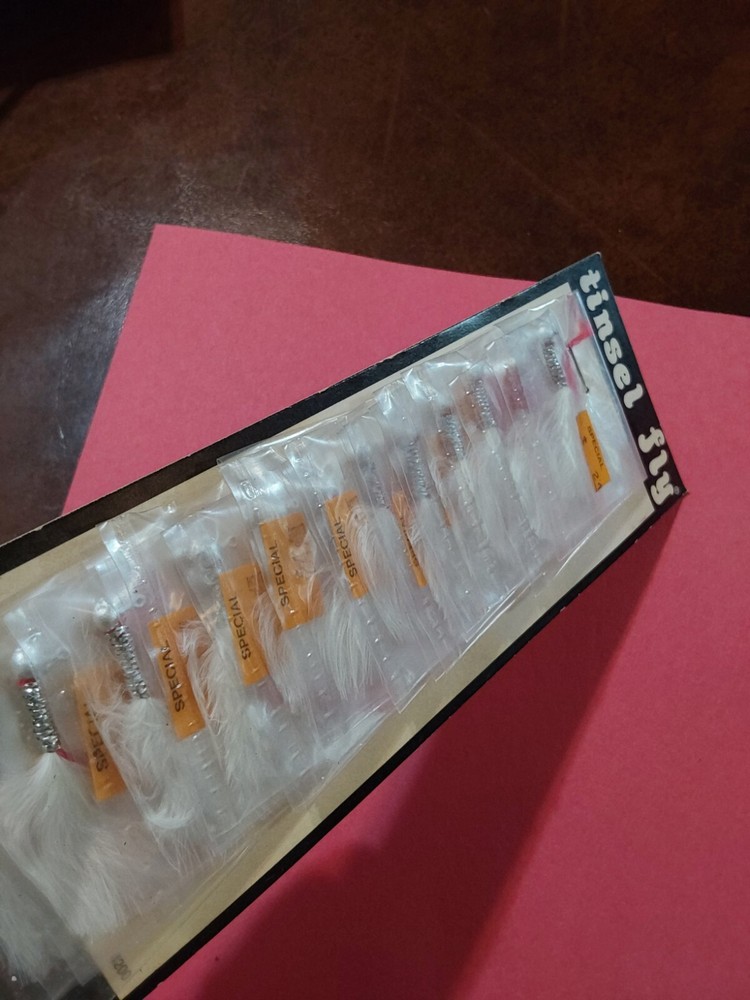 12 VINTAGE NOS DOLL FLY LURES COMPLETE ON CARD AS PICTURED, WHITE WITH WHITE HEAD. VERY TUFF TO FIND IN THIS CONDITION PLEASE LOOK AT THE OTHER DOLL & TINSEL FLY LURES I HAVE LISTED SHIPPED USPS GROUND ADVANTAGE
