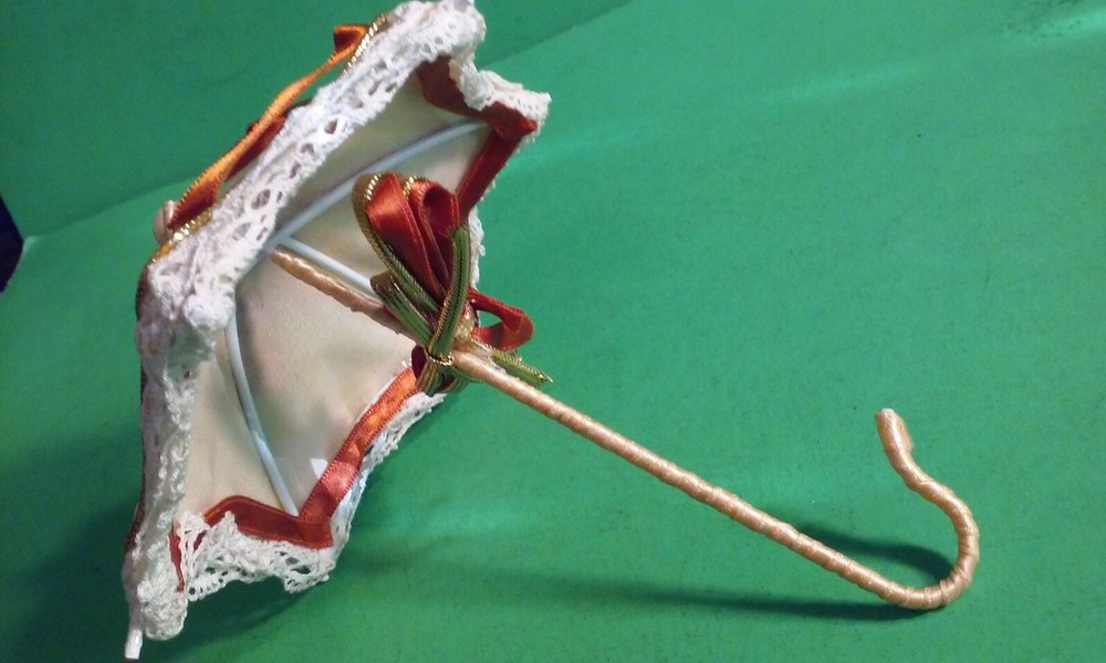 Vintage doll or decorative Umbrella Parasol Fancy Lace Wire & Ribbons Crafted.