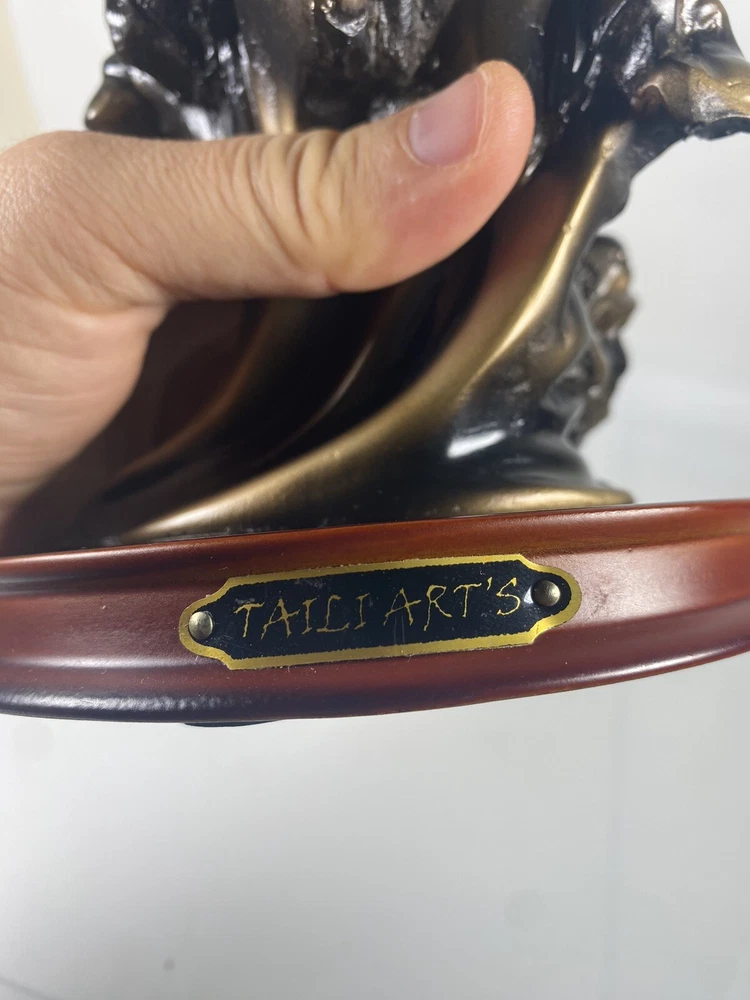 The figure is made of a material similar to plastic or bronze-colored ceramics. It has no visible defects, look at the photo.