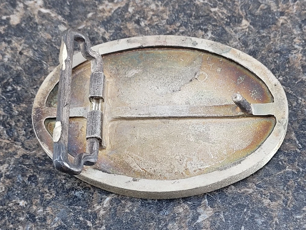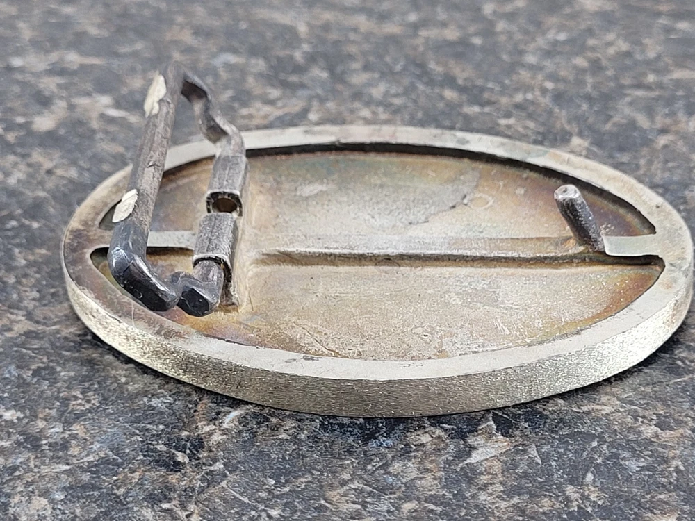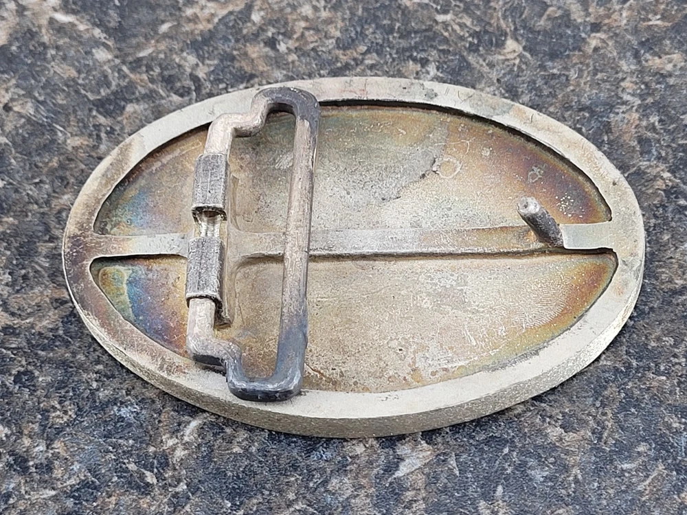 This belt buckle is approximately 8.5 cm x 6 cm.