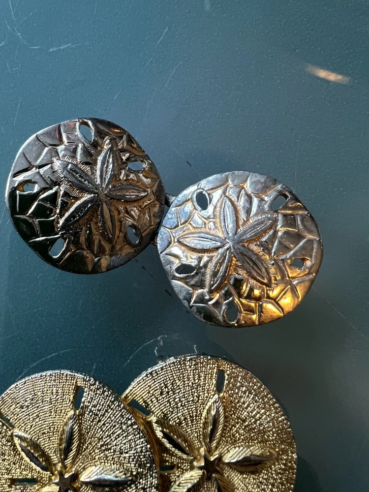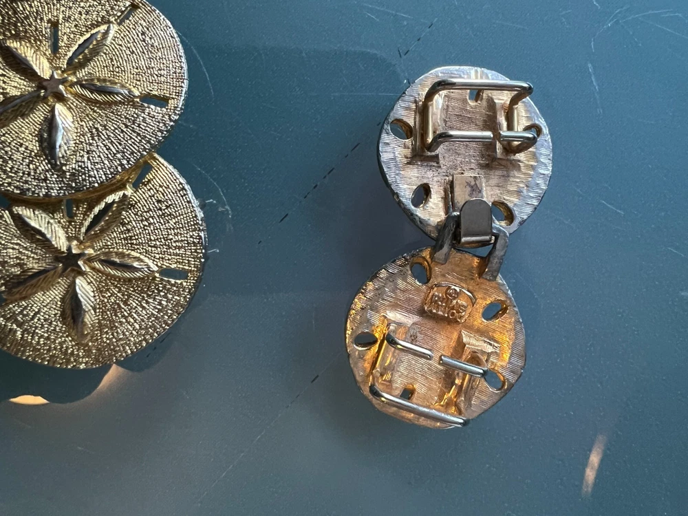 Vintage Dotty Smith Sand Dollar 2 Piece Belt Buckle Goldtone Ocean Beachy 80s 90