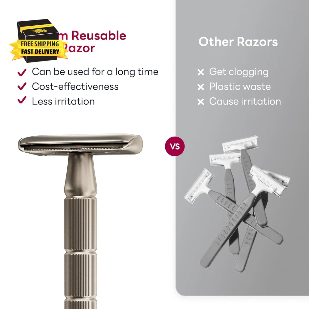 Store New Arrivals Add to Favorite View Feedback Contact Double-Edge Safety Razor, Single-Blade Razors with 5 Stainless Steel Razor Blades for Men and Women, Reusable Metal Razor – Champagne Matt ⭐️⭐️⭐️⭐️⭐️ Description Unit Count 1 Count Color Champagne Matt Razor Number of Blades 5 Skin Type All, 1 Count (Pack of 1) Size 1 Count (Pack of 1) Special Feature Ergonomic, Portable, Reusable, Double Edge Package Dimensions 5.63 x 2.4 x 0.67 inches; 2.12 ounces YOUR SHAVING SKINCARE WITH CAVEEM : Our double-sided razor is crafted from upscale, corrosion-resistant metal, ensuring durability and long-lasting use. The stainless steel blades wrapped in wax paper offer better safety, smoother and convenient shaving DESIGN FOR BEGINNER :CAVEEM's reusable metal razor offers effortless, precise shaving with light glides. Its innovative handle design is non-slip crafted for comfortable grips, allowing smoother shaving at a 30-degree angle LIGHTER PACKAGING : With a weight of 2.21 oz, CAVEEM's non-plastic razor set is portable to use. To maintain your razor for life-long use, rinse thoroughly after each use, dry completely, and store the razor in dry places for good condition TAKE PLEASURE IN PRACTICAL SHAVING : Ditch disposable plastic razors with CAVEEM’s metal razor and replaceable double-edged blades, reducing plastic waste while supporting endurable products while maintaining high-grade lives HOME AND TRAVEL ESSENTIAL : Our razor set is essential for home grooming and stylish companions for travel, offering sustainable shaving solutions for your family to comfort themselves Product Description 1 Stylish and Compact 2 Multiple Colors 3 Best Shaving Angle ABOUT US We offer the best prices around on high quality products. Our E-store includes media such as books, movies, music and games while offering electronics, toys, sporting apparel, clothing, tools, general home, garden items and more. SHIPPING We are always working hard to ensure your package arrives as soon as possible. Please understand that some factors like weather, high postal traffic, and the performance of shipping companies are outside of our control. We offer free shipping to the lower 48 states and ship within 2 business days of payment, usually sooner. We do not accept P.O. Boxes. Please provide a physical address. For shipping outside of the continental USA, we only use eBay's Global Shipping Program.The item is shipped to KY and then sent to the rest of the world. International customers are responsible for all duties and taxes. Continue to check out in order to calculate costs for shipping the item to your country. Messages regarding eBay's Global Shipping Program MUST be directed at eBay EXCLUSIVELY. RETURNS We offer a 30-Day Return Policy on items which you are not completely satisfied with. You have the option for a full-refund or an exchange of the item. No returns are available on items shipped outside of the USA. PAYMENT We accept PayPal. CONTACT US This page content is yet to come Please ad us to your favorite seller and visit again later Thank You CUSTOMER SATISFACTION We try our very best to make sure every customer is completely satisfied. If there's a problem, message us! We're happy to help. WE ACCEPT Copyright © 2021 AutoDS. | All Rights Reserved