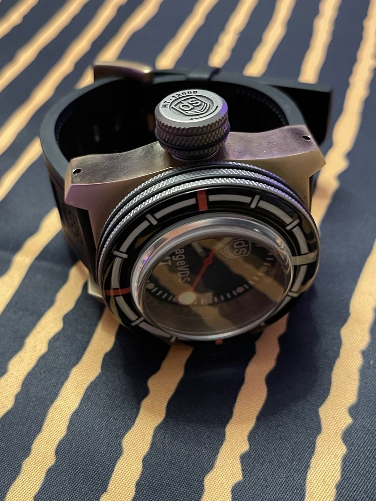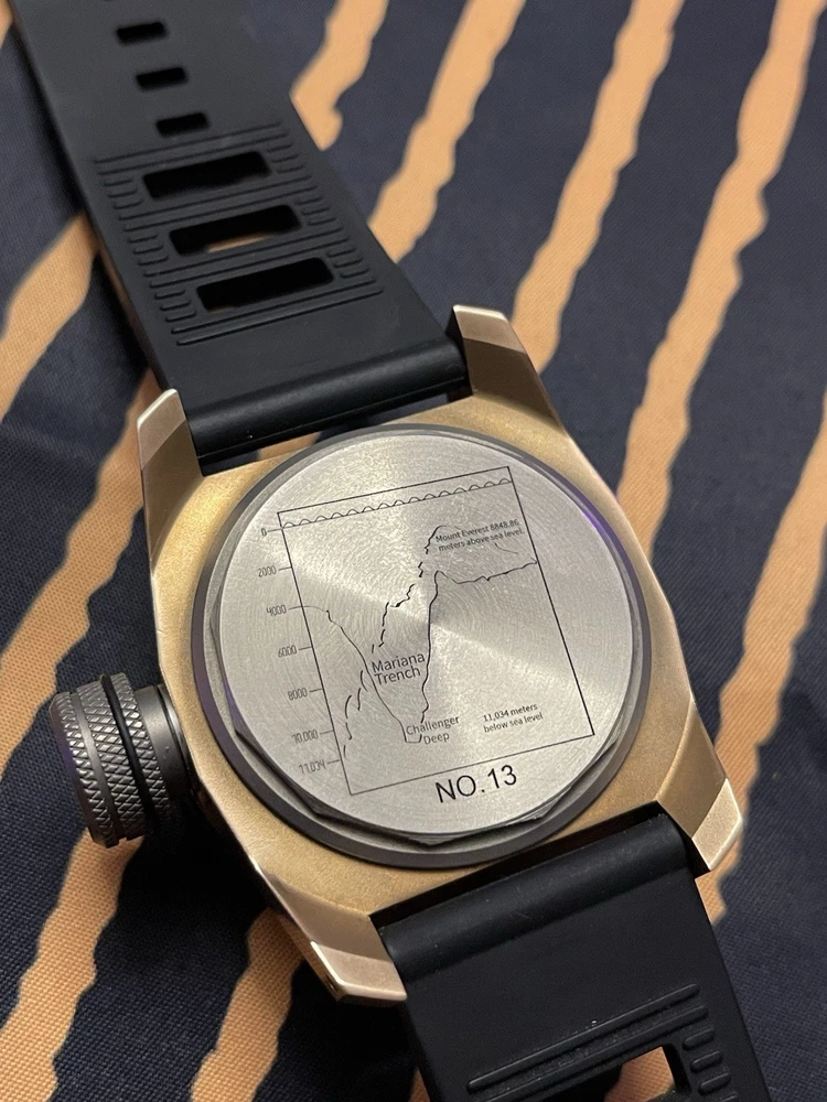 Vintage Dreamstar DS Watch 12,000 Mm No13 limited edition VINTAGE DREAM STAR MT 12000M LIMITED EDITION CASE - Bronze MOVEMENT - AUTOMATIC SWISS SELLITA SW200 CASE BACK - SOLID BACK CROWN - DOUBLE SCREW DOWN WITH BRONZE OUTER CROWN CRYSTAL - EXTENDED SAPPHIRE LUGS - 28MM WATER RESISTANCE - 12000M DIMENSIONS - 49MM X 24MM THICK NOT INCLUDING CROWN, CRYSTAL OR LUGS