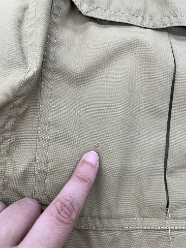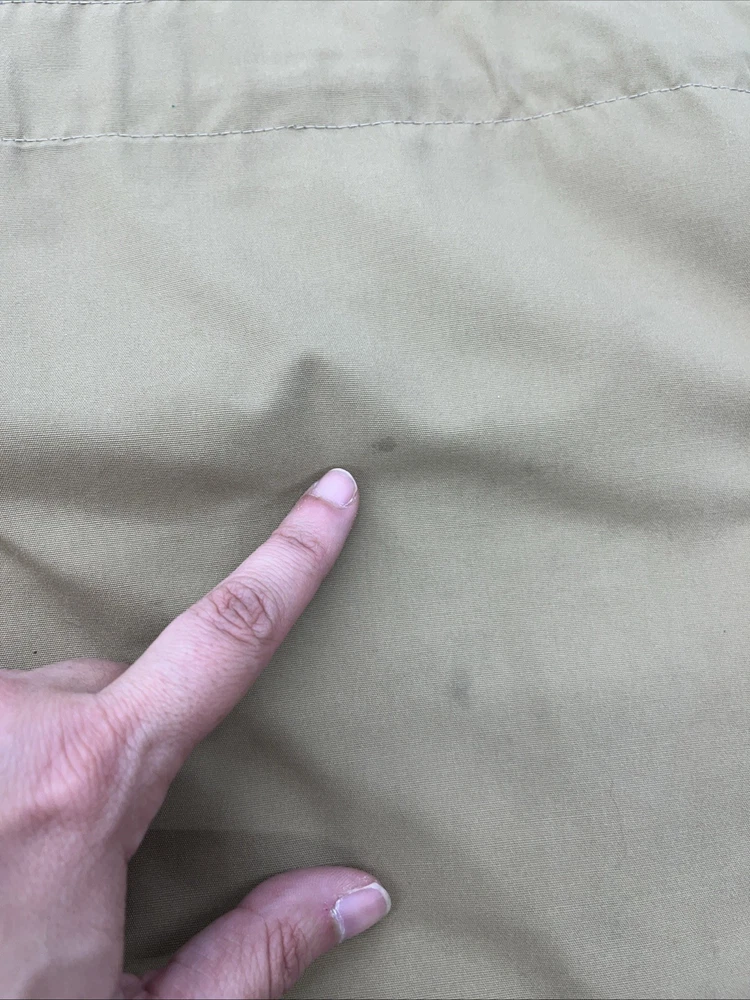 Overall fine condition - I rated it fair because there are a couple of (small) set in light stains. I tried to highlight them in the photo. They certainly don't render the jacket unwearable, but important to understand this jacket is not in perfect shape, although decent for the age! Thanks for looking! Please note - we offer free, no questions asked returns on most items. Please check the return policy. Please see all photos and thanks for looking!