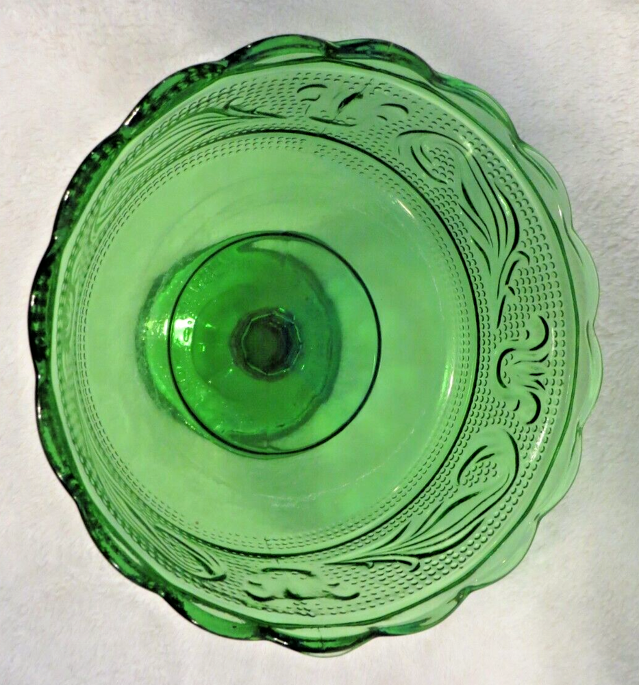 Vintage EO Brody M6000 Emerald Green Glass Compote Pedestal Candy Dish USA Measures approximately 6 1/2" diameter x 5 1/2"H x 3" deep