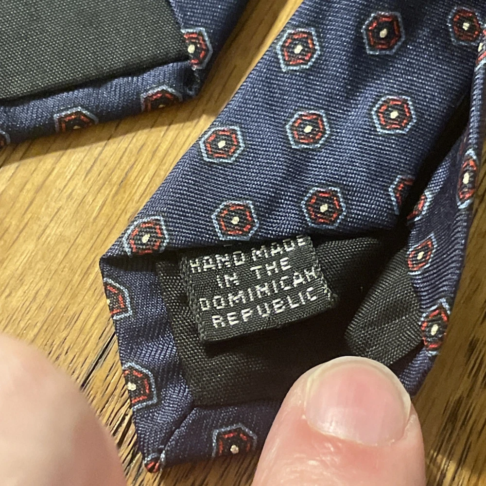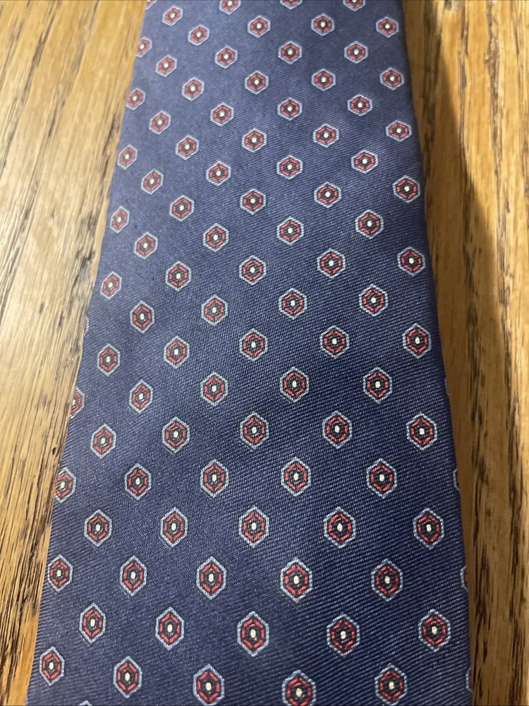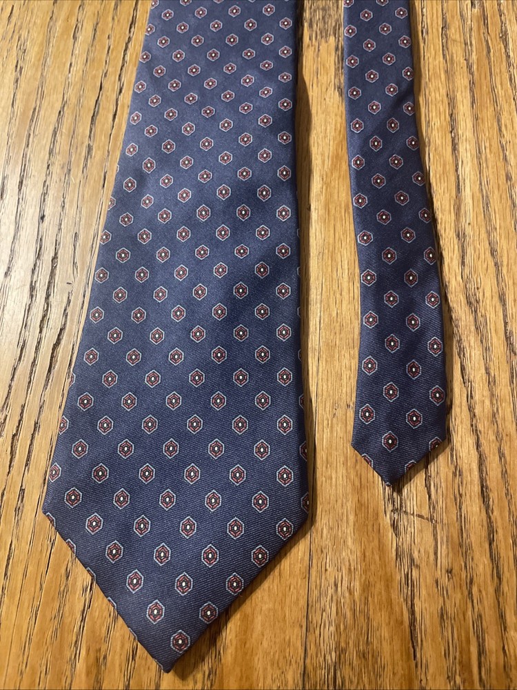 This Vintage EUC 417 By Van Heusen Silk Foulard Tie is a high-quality men's necktie crafted from 100% silk. The classic narrow width and designer preppy style make it a timeless accessory for any formal occasion. The multicolor foulard pattern adds a touch of sophistication to any outfit, making it a versatile piece that can be worn for years to come. Perfect for adding a vintage touch to your wardrobe, this tie embodies classic elegance and style.