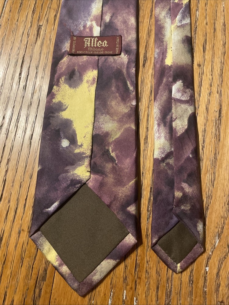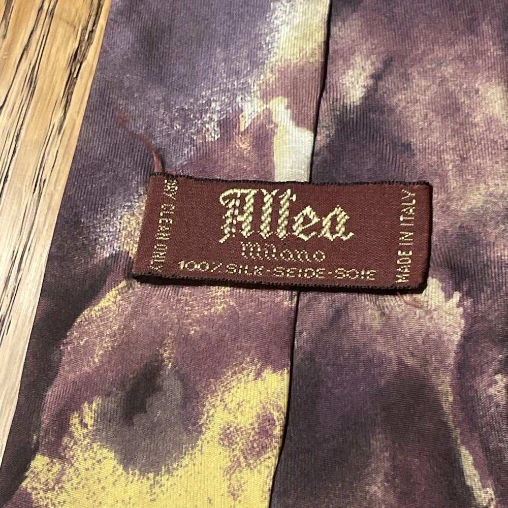 This Vintage EUC Altea Milano Abstract Silk Tie is a stylish and classic accessory for men. Made in Italy, the tie features a unique abstract pattern in multicolor, perfect for adding a preppy touch to any outfit. Crafted from 100% silk satin, this designer piece exudes sophistication and elegance. The classic width and vintage design make it a versatile and timeless addition to any man's wardrobe.