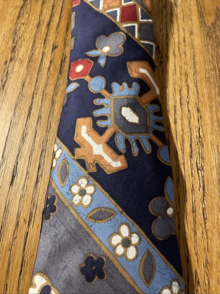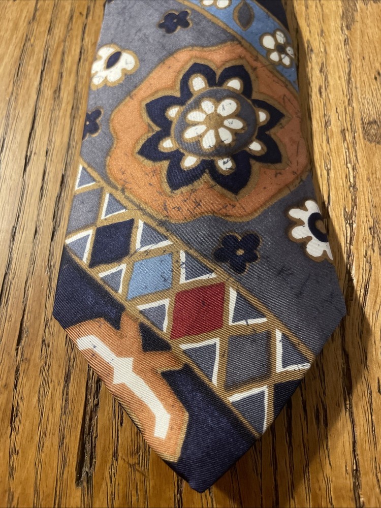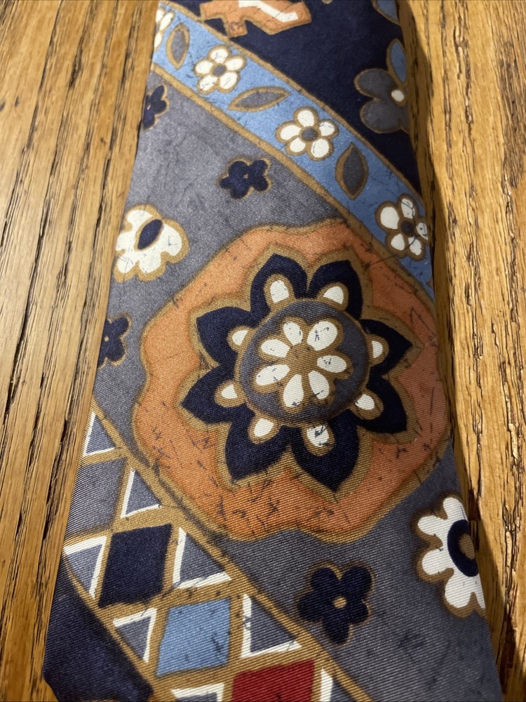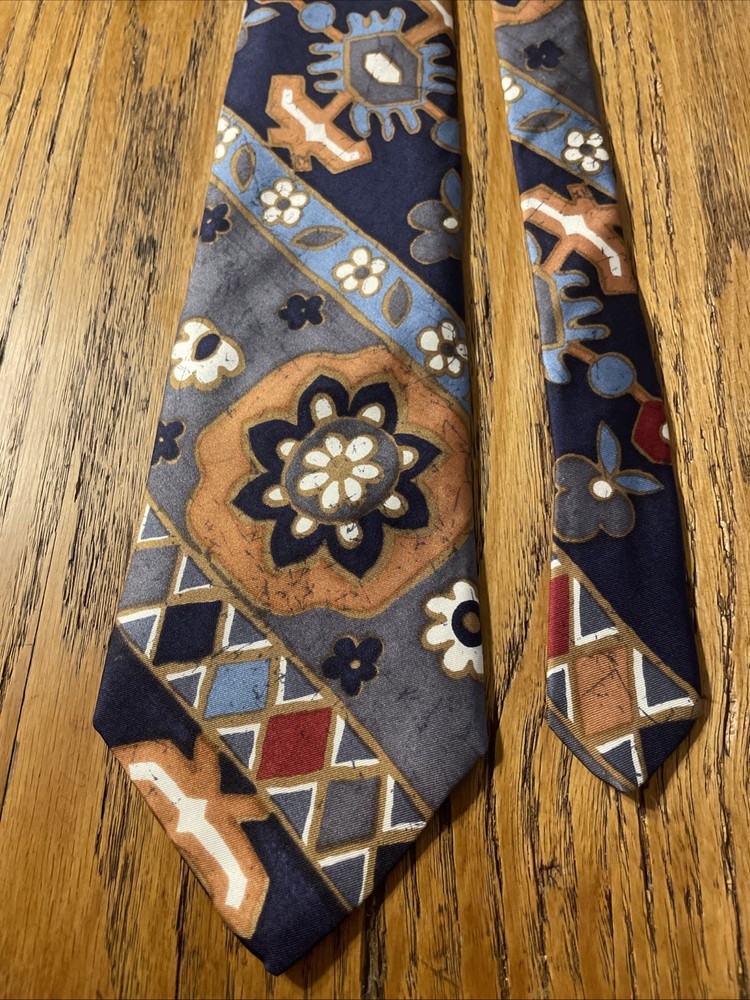 $ 15.84EUC Ike Behar Thick Silk Satin Foulard Tie Floral USA Hand Tailored Necktie