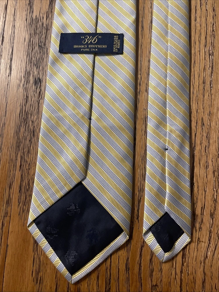 This vintage Brooks Brothers 346 Pure Silk Striped Tie is a designer men's necktie featuring a classic multicolor striped pattern. Made in the USA from 100% silk satin fabric, this preppy style tie exudes sophistication and timeless elegance. Perfect for adding a touch of refinement to any formal outfit, this Brooks Brothers tie is a high-quality accessory that showcases a heritage of excellence and style.
