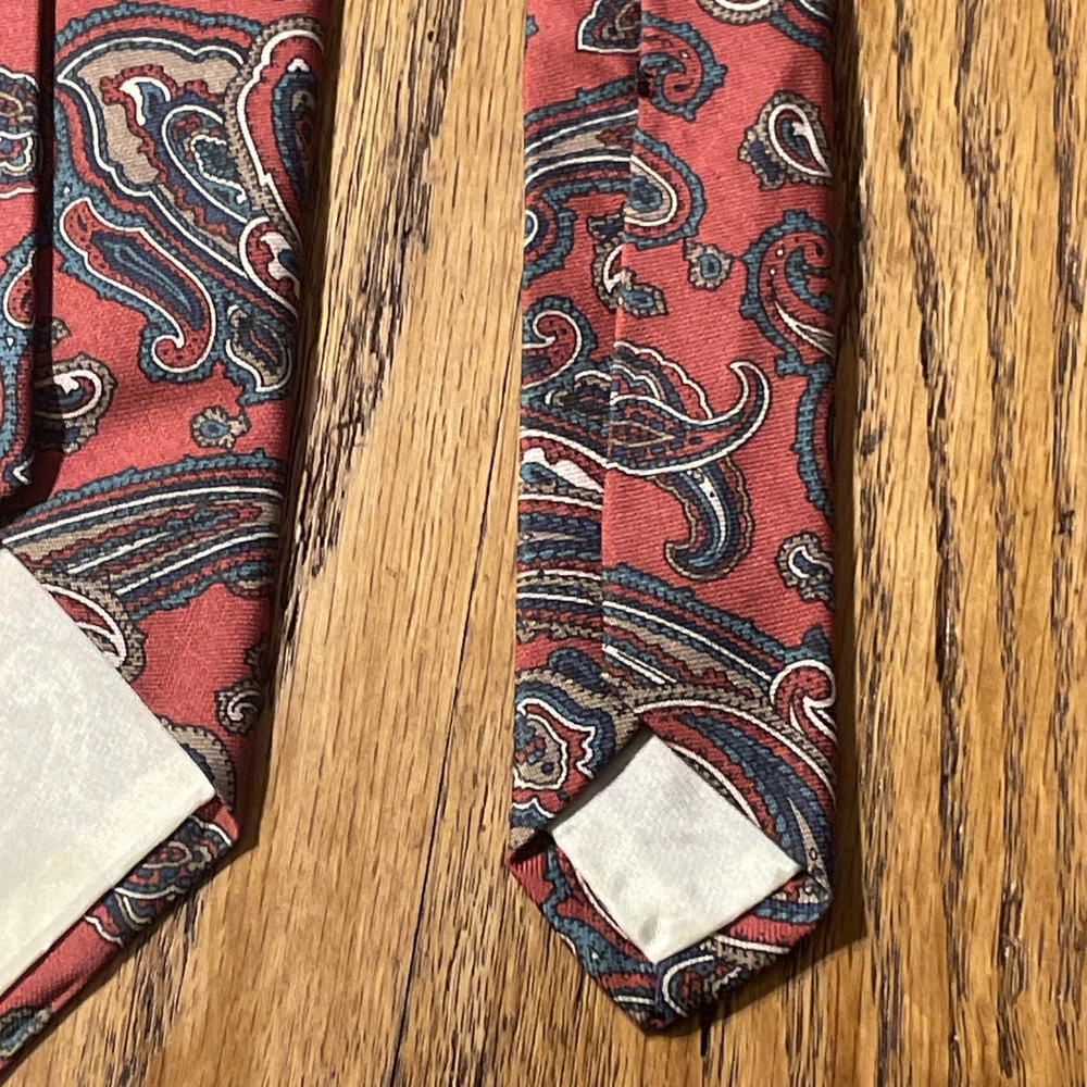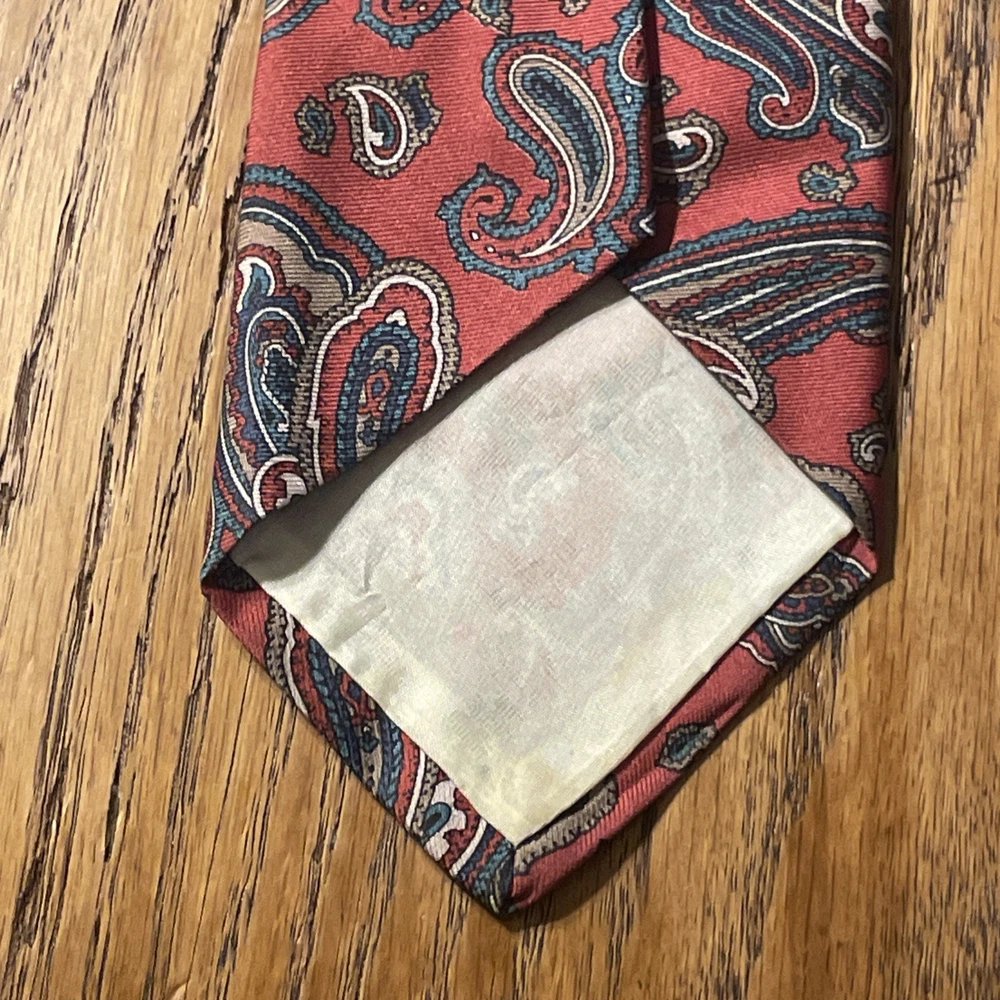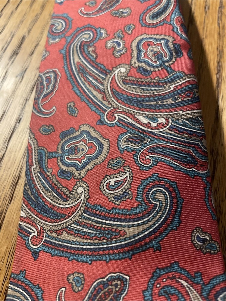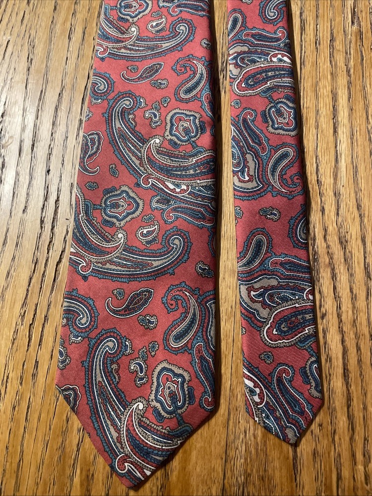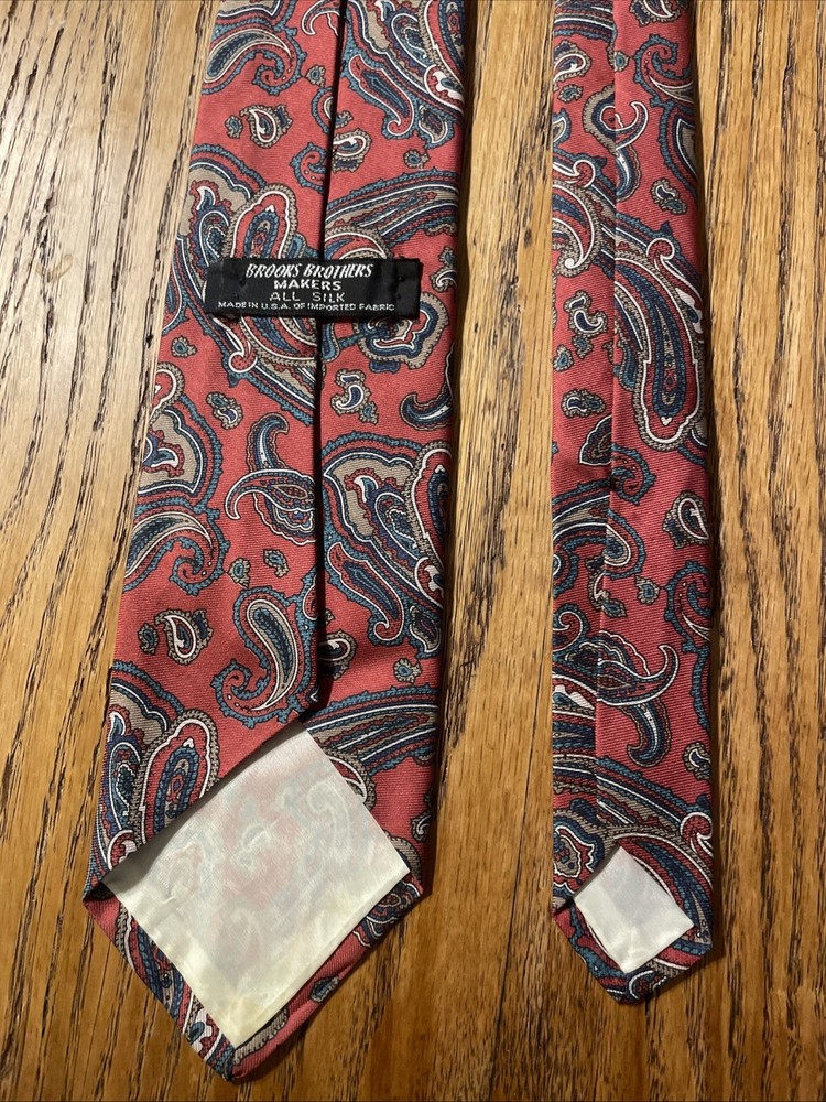 This Vintage EUC Brooks Brothers Silk Paisley Tie is a classic and stylish accessory for men. Made in the USA with 100% silk, this designer tie features a multicolor paisley pattern, embodying a preppy and sophisticated style. Perfect for adding a touch of vintage charm to any outfit, this tie is a timeless piece that exudes quality and elegance.