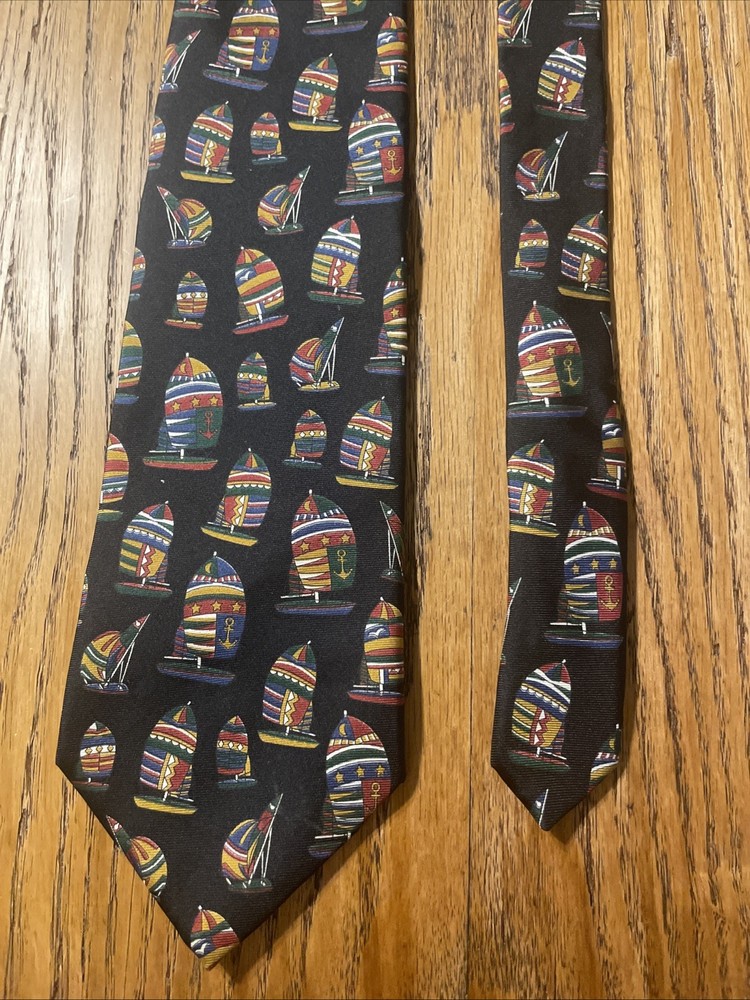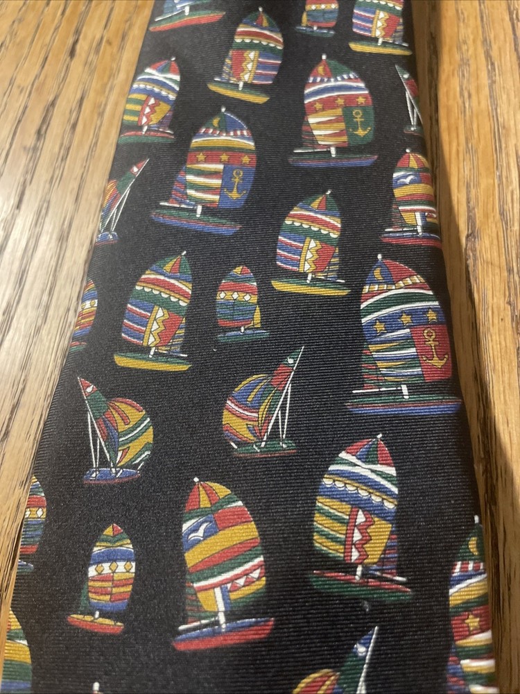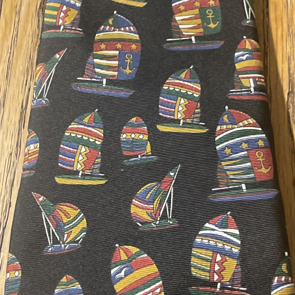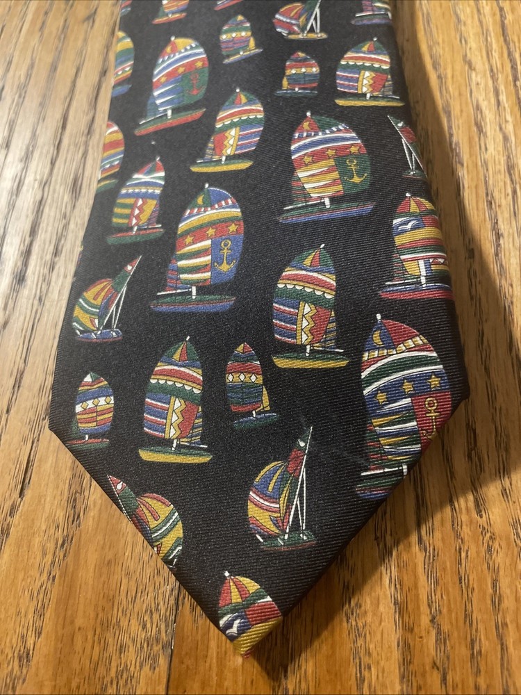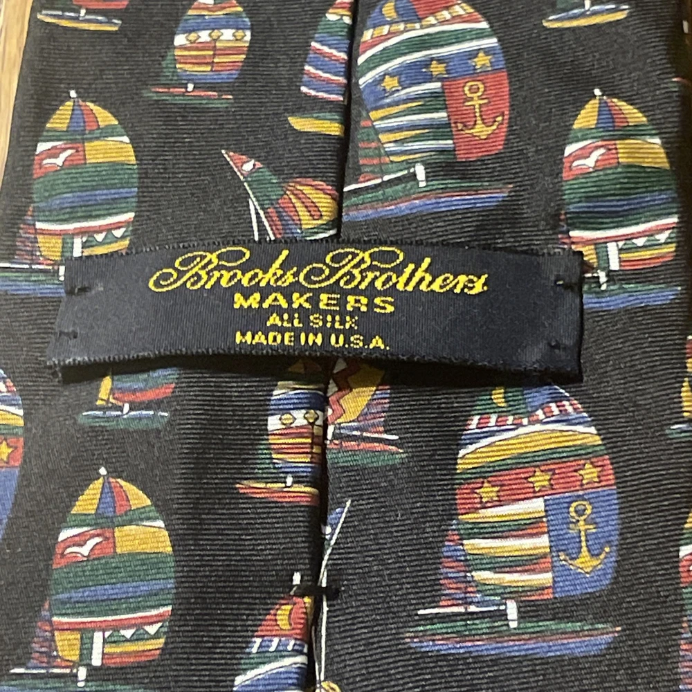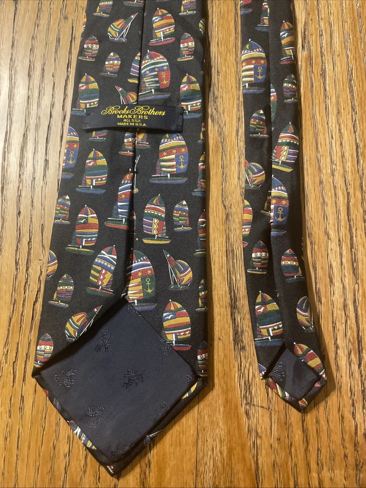 Color: Multicolor Fabric Type: Silk Brand: Brooks Brothers Item Width: Classic Vintage: Yes Country of Origin: United States Theme: Preppy Department: Men Pattern: Sailboats Style: Designer Type: Tie Material: 100% Silk