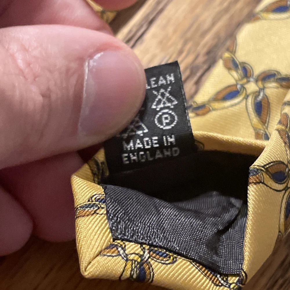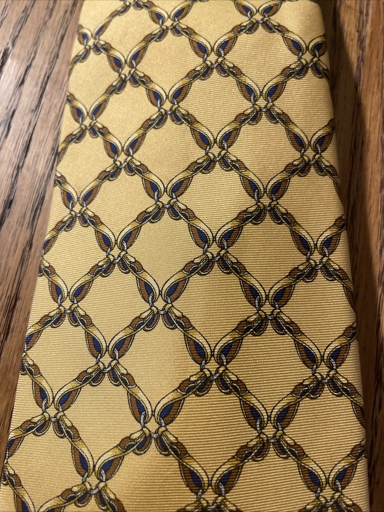 Vintage EUC Burberry Geometric Gold Links Silk Tie Necktie Made In England UK