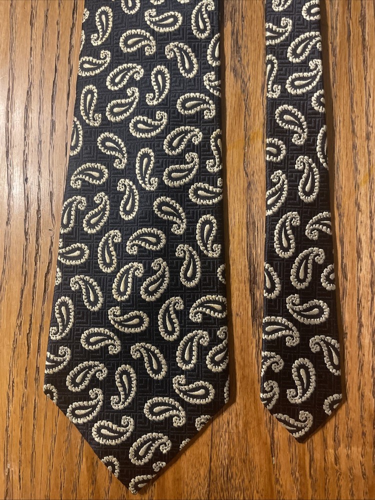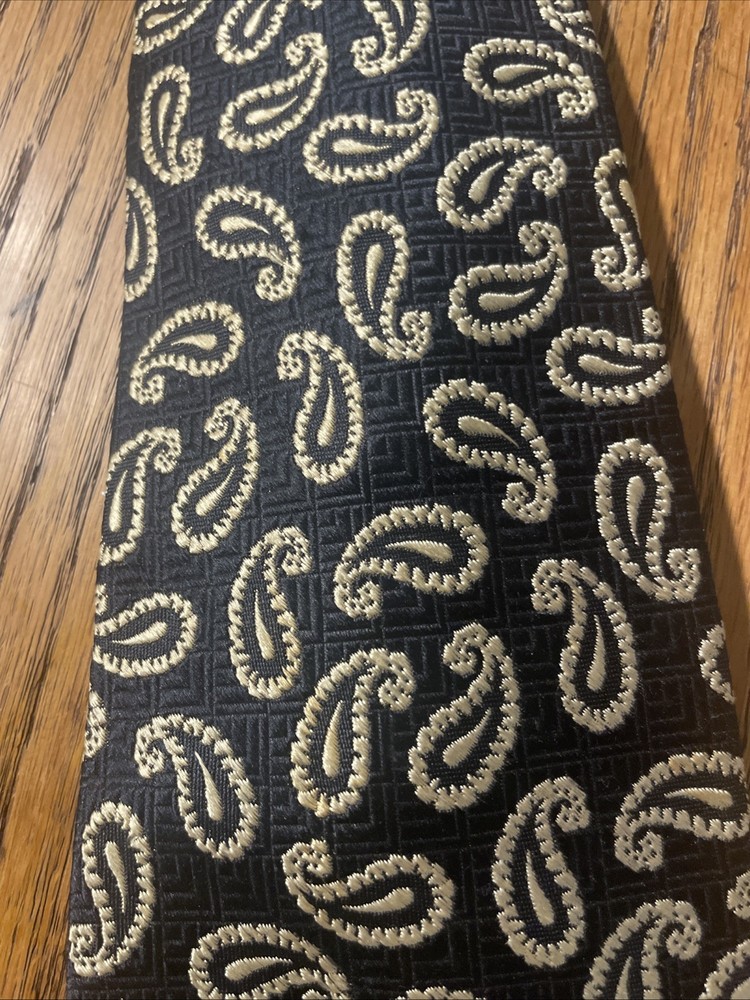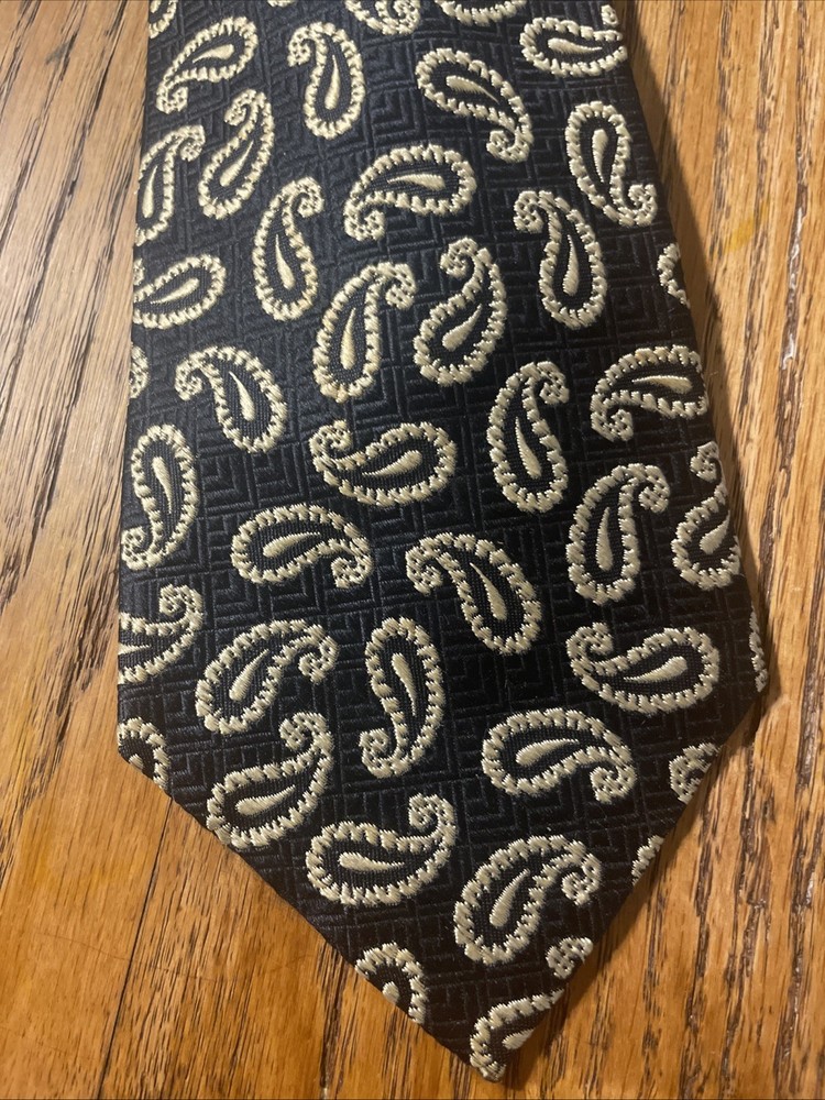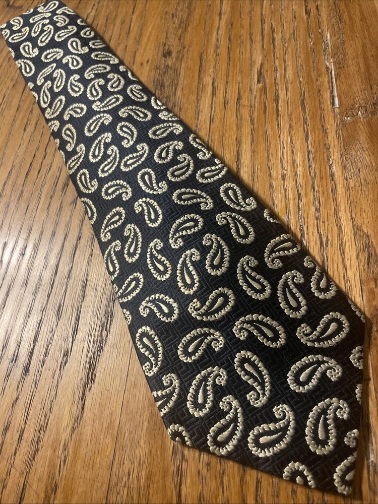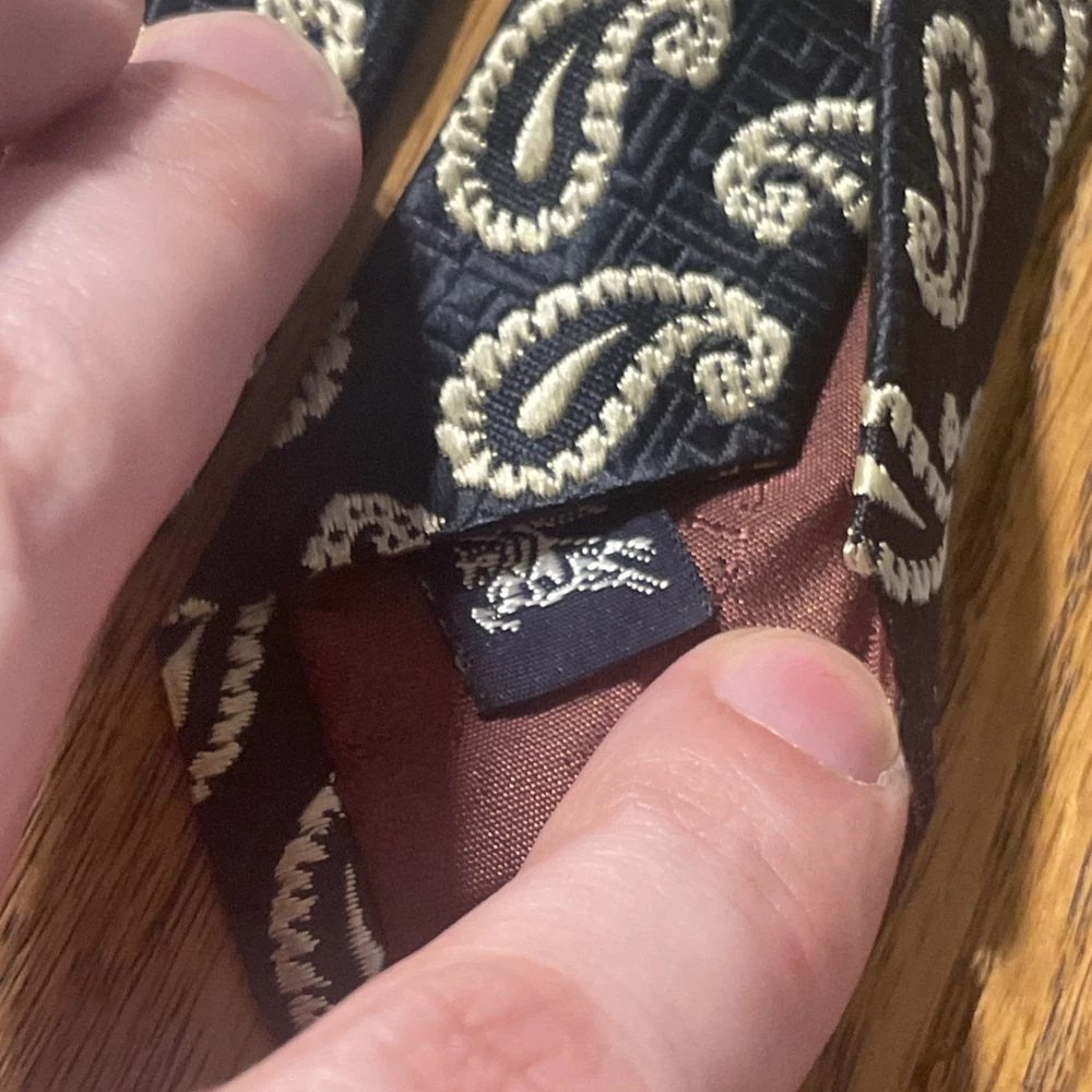 This vintage Burberry woven silk paisley tie is a classic men's accessory hand-sewn in the USA. The multicolor design, featuring a preppy paisley pattern, adds a touch of designer style to any outfit. Made from 100% silk, this tie is a luxurious and timeless piece that exudes sophistication and elegance. Perfect for adding a unique and stylish flair to a man's wardrobe.