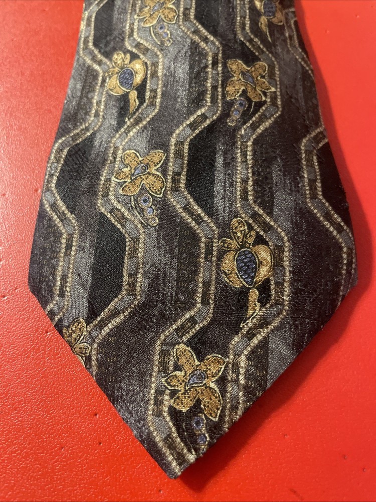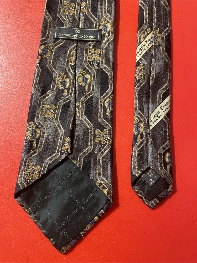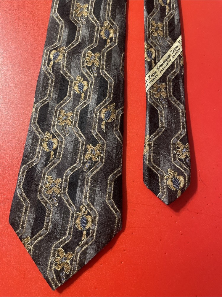 Elevate your formal attire with the Vintage Ermenegildo Zegna Silk Tie, an impeccable accessory for the distinguished gentleman. Boasting an eye-catching Abstract Floral / Paisley Droplets pattern, this necktie is a testament to Zegna's commitment to luxury and timeless style. The vibrant multicolor palette ensures this tie will add a dash of sophistication to any outfit, making it a versatile choice for a variety of occasions. Crafted from 100% silk with a classic width, it offers a smooth, high-quality finish that speaks volumes of its Italian-made craftsmanship. Whether it's for business or a special event, this designer tie exemplifies preppy elegance and is sure to enhance your wardrobe with its enduring appeal and distinctive design.