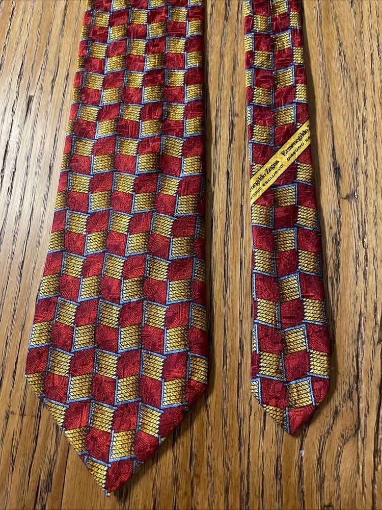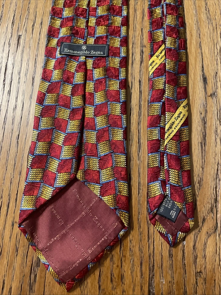 Vintage EUC Ermenegildo Zegna Silk Geometric Tie Jacquard Necktie Made In Italy