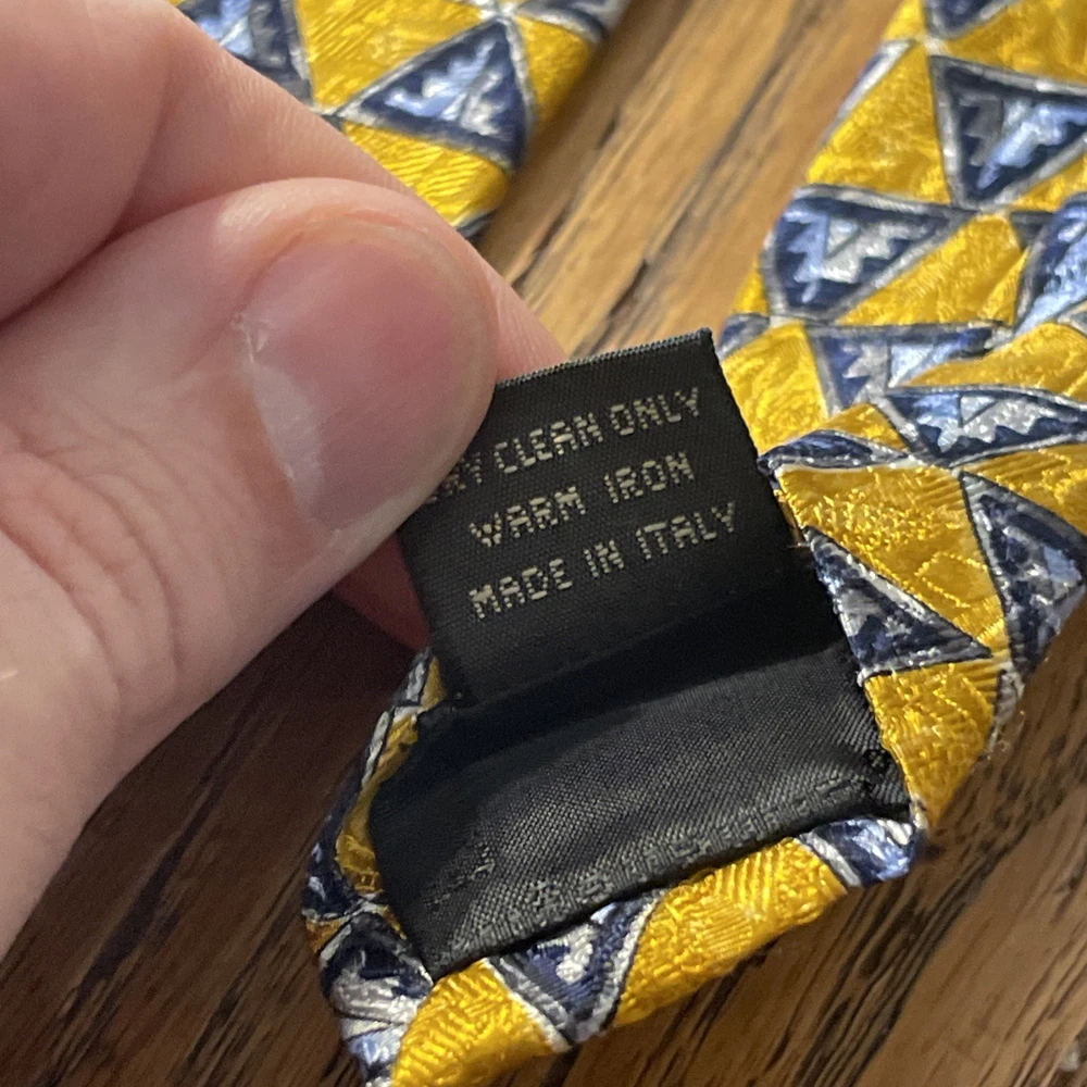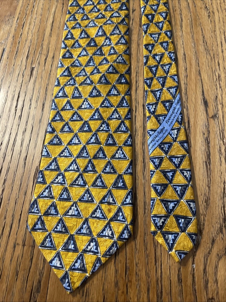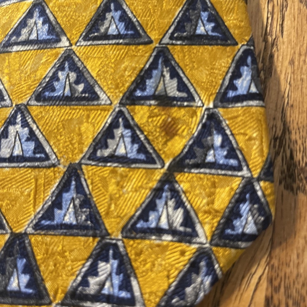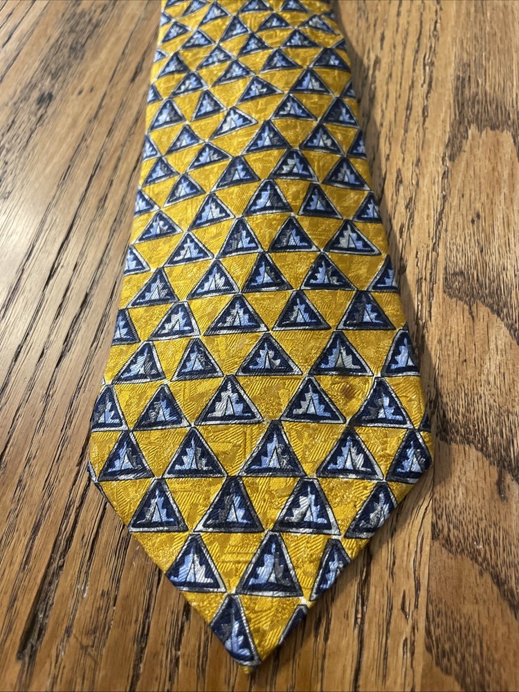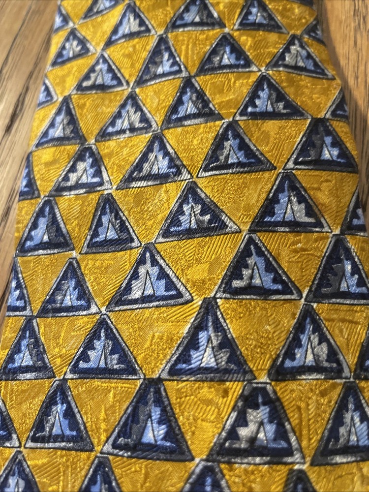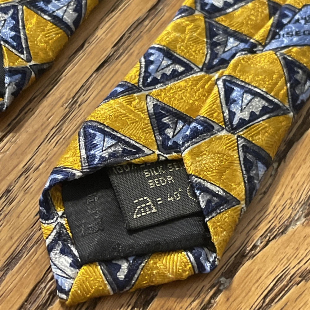 This vintage Ermenegildo Zegna silk geometric tie is a classic piece made in Italy. The tie features a preppy design with a multicolor geometric pattern, crafted from 100% silk jacquard fabric. This designer necktie adds a touch of luxury and sophistication to any formal outfit, making it a versatile and stylish accessory for men. Faint blemish on the front blade, see pics.