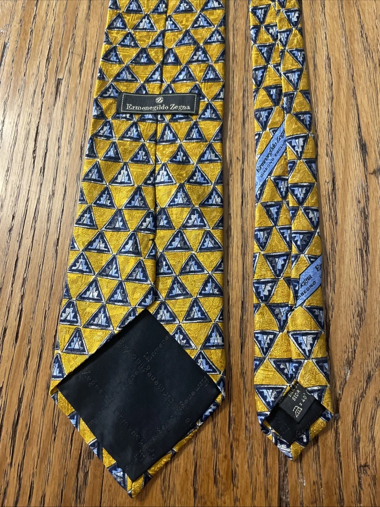Vintage EUC Ermenegildo Zegna Silk Geometric Tie Jacquard Necktie Made In Italy
