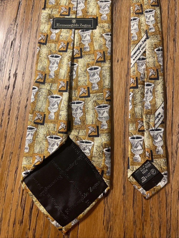 This vintage Ermenegildo Zegna silk tie features a tiny floral pattern, making it a sophisticated and stylish accessory for men. Made in Italy with 100% silk jacquard fabric, this designer tie is perfect for adding a touch of luxury to a preppy outfit. The classic width and multicolor design make it a versatile piece that can elevate any formal look.
