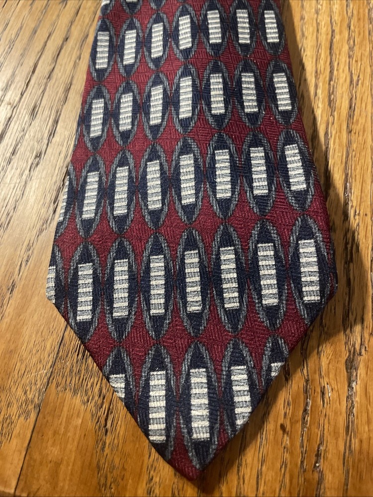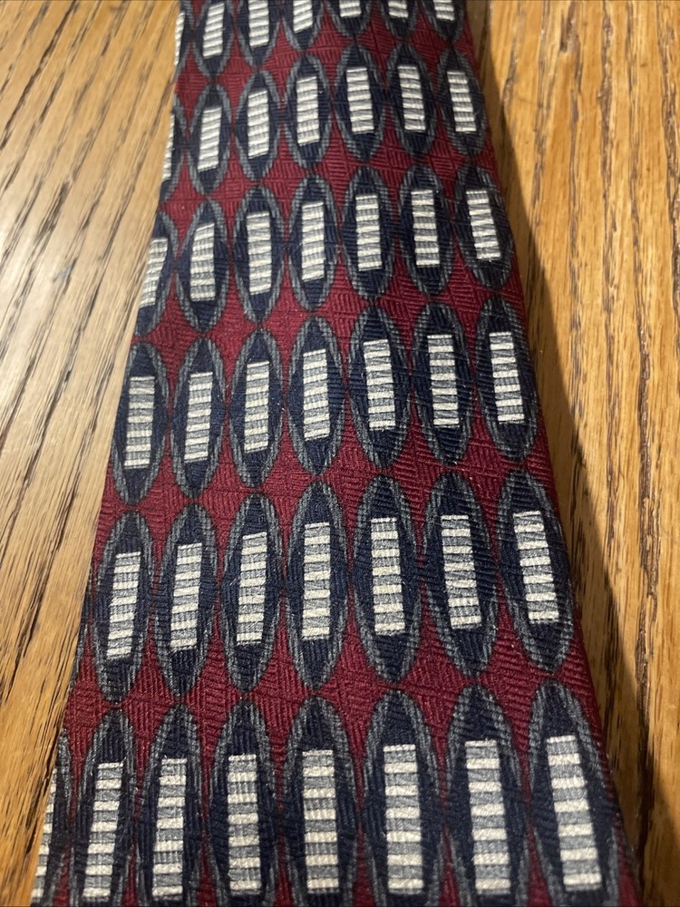 $ 5.28EUC Jos. A. Bank Corporate Silk Fine Geometric Tie USA Hand Sewn Men’s Necktie