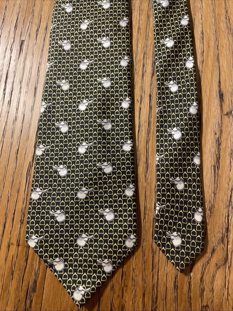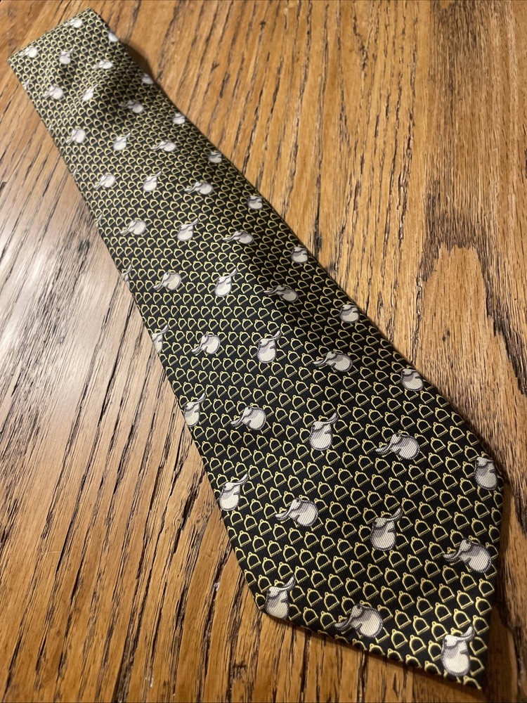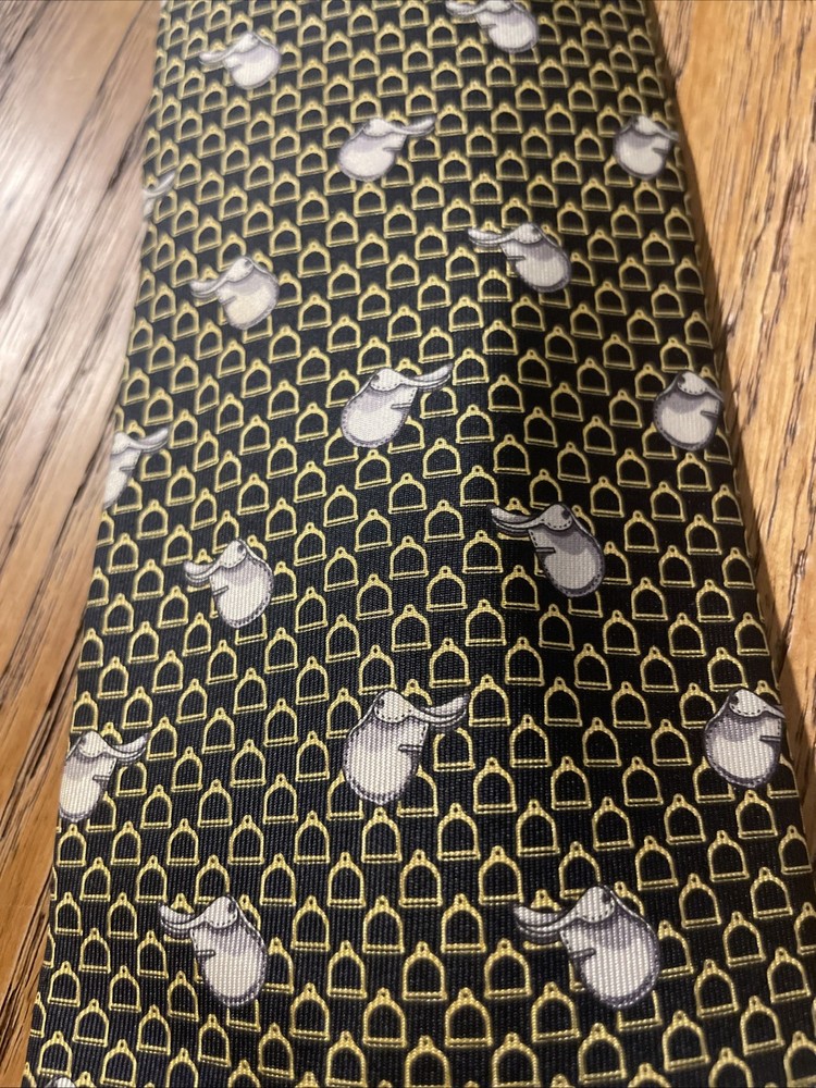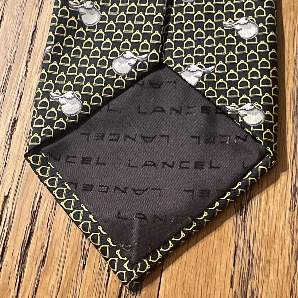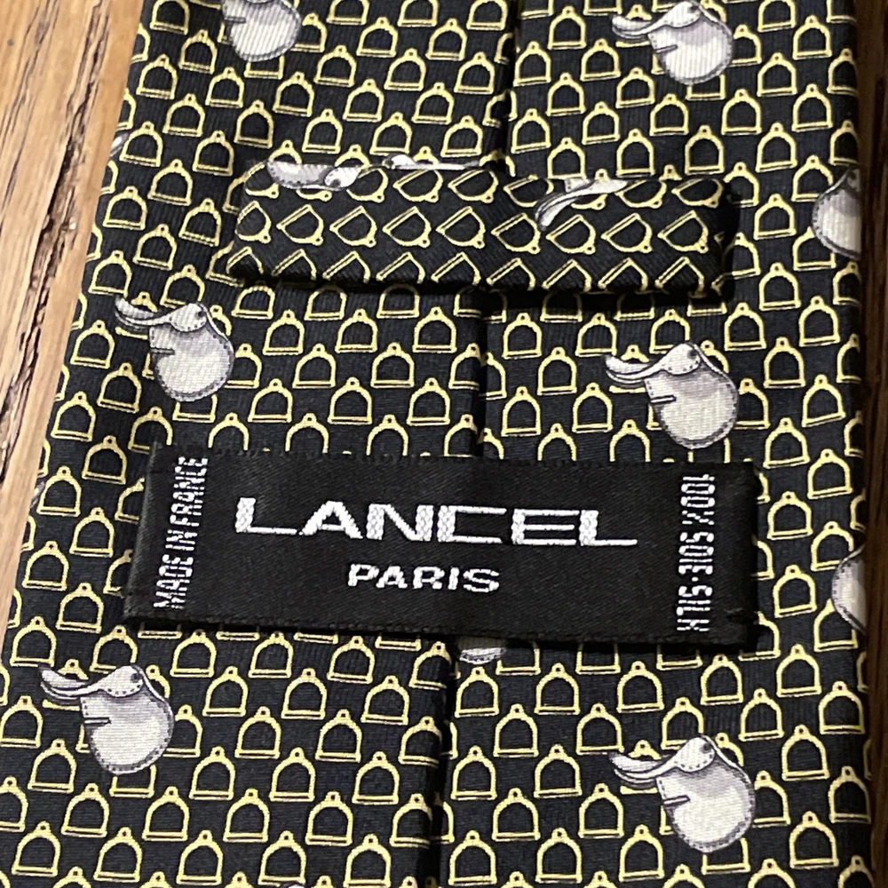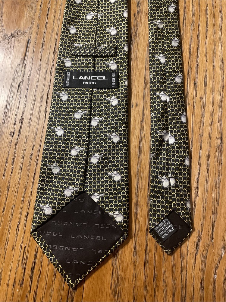 This Vintage EUC Lancel Paris Silk Equestrian Theme Tie Necktie is a luxurious and stylish accessory for men. Made in France from 100% silk satin, this multicolor tie features a classic width and a designer preppy style. The equestrian pattern adds a touch of elegance and sophistication, making it a versatile piece that can elevate any outfit. Perfect for those who appreciate vintage luxury and fine craftsmanship.
