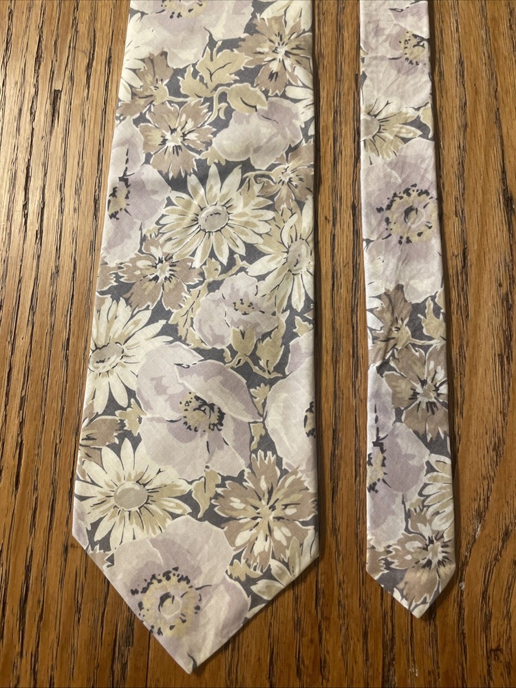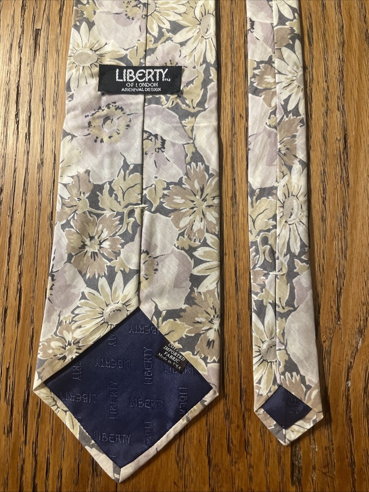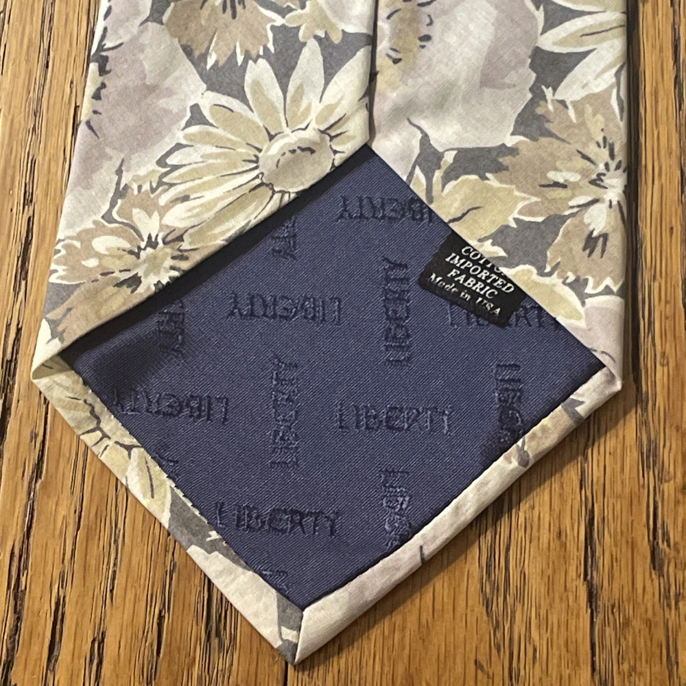 This vintage Liberty of London cotton floral print tie is a classic men's accessory made in the USA. The multicolor floral pattern adds a touch of designer style to any outfit, perfect for those with a preppy aesthetic. Made from high-quality cotton fabric, this necktie exudes a timeless charm and sophistication that is sure to elevate any ensemble.
