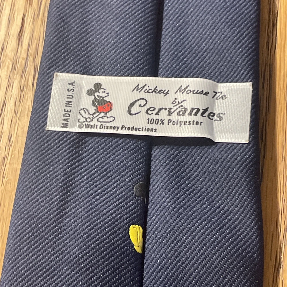 This vintage EUC Mickey Mouse tie by Cervantes is a unique and charming accessory for men. Made in the United States, the tie features a classic navy color with a Mickey Mouse pattern, adding a playful touch to any outfit. Made from polyester fabric, this designer tie is perfect for those who appreciate retro-inspired fashion and Disney nostalgia.