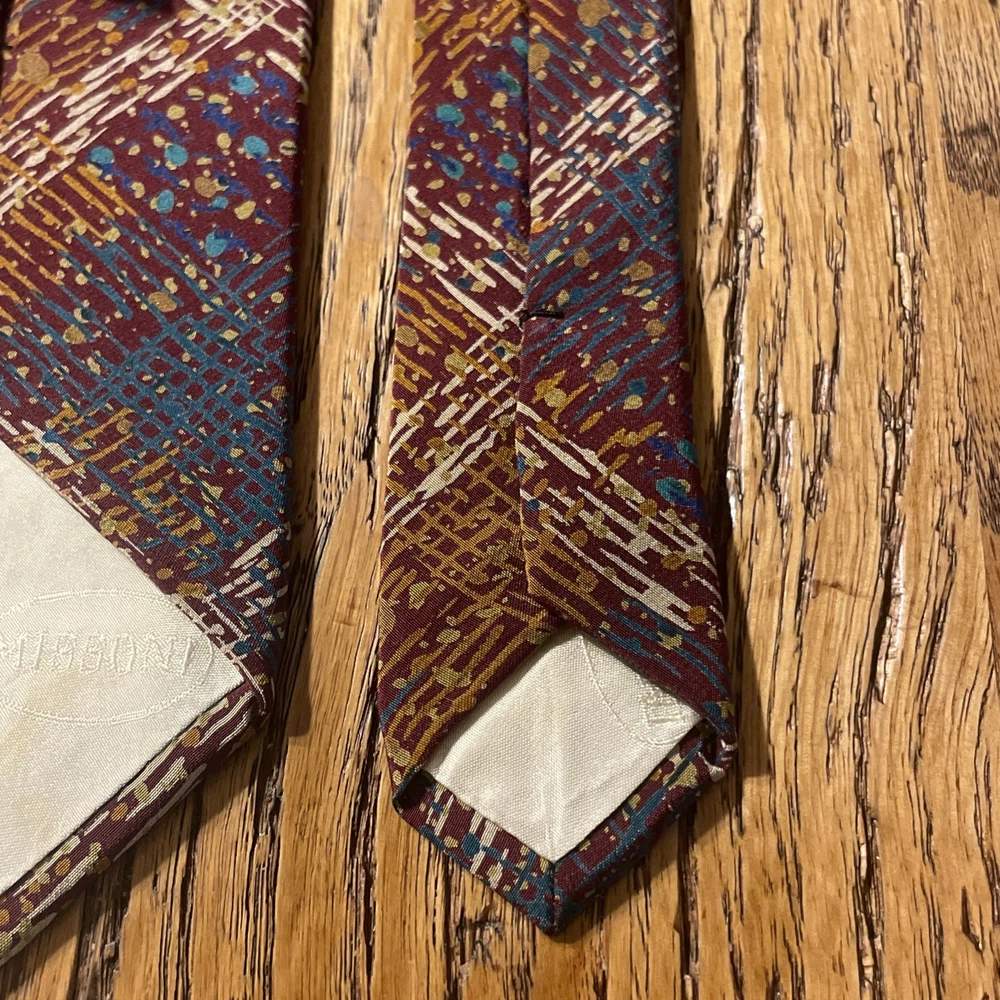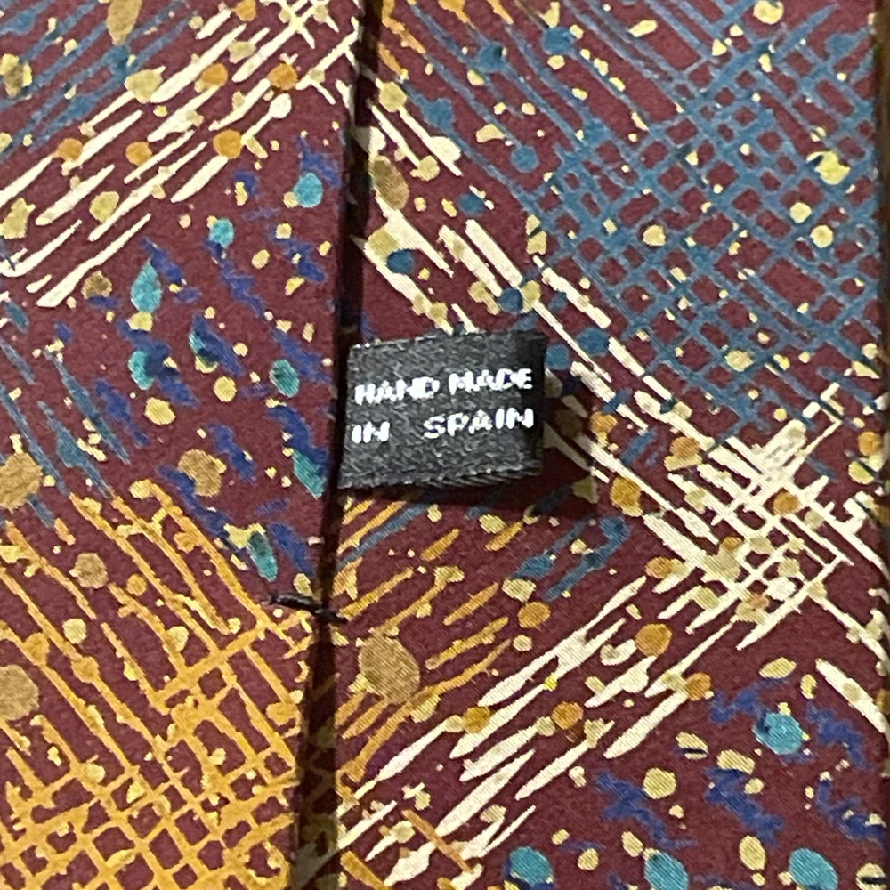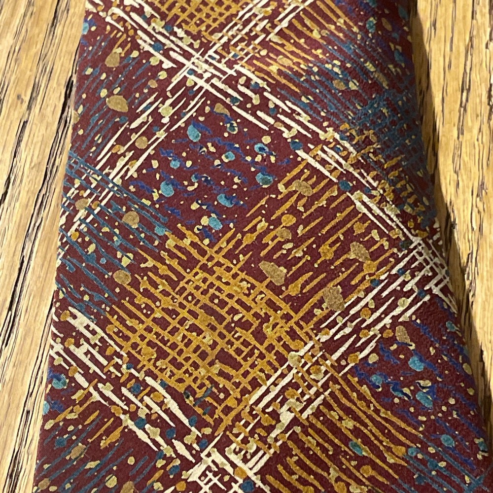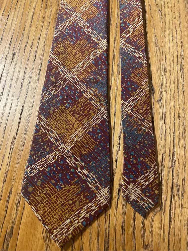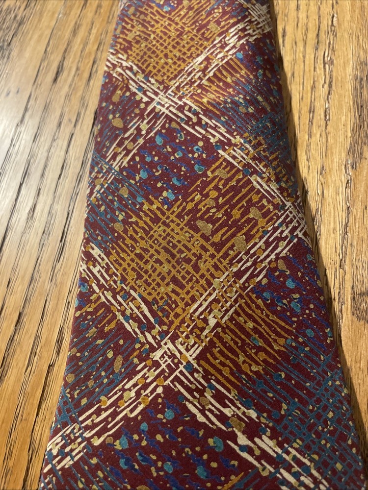 This vintage Missoni abstract splatter silk tie is a stylish men's accessory with a classic and preppy appeal. Made in Spain, the multicolor design features a unique abstract splatter argyle pattern, perfect for adding a touch of designer flair to any outfit. Crafted from 100% silk satin, this classic width tie is a timeless piece that will elevate any formal ensemble.