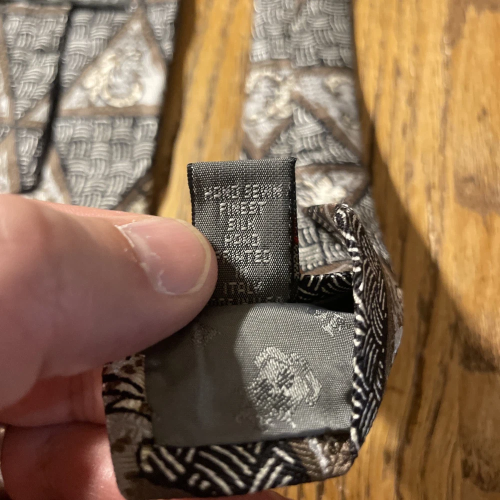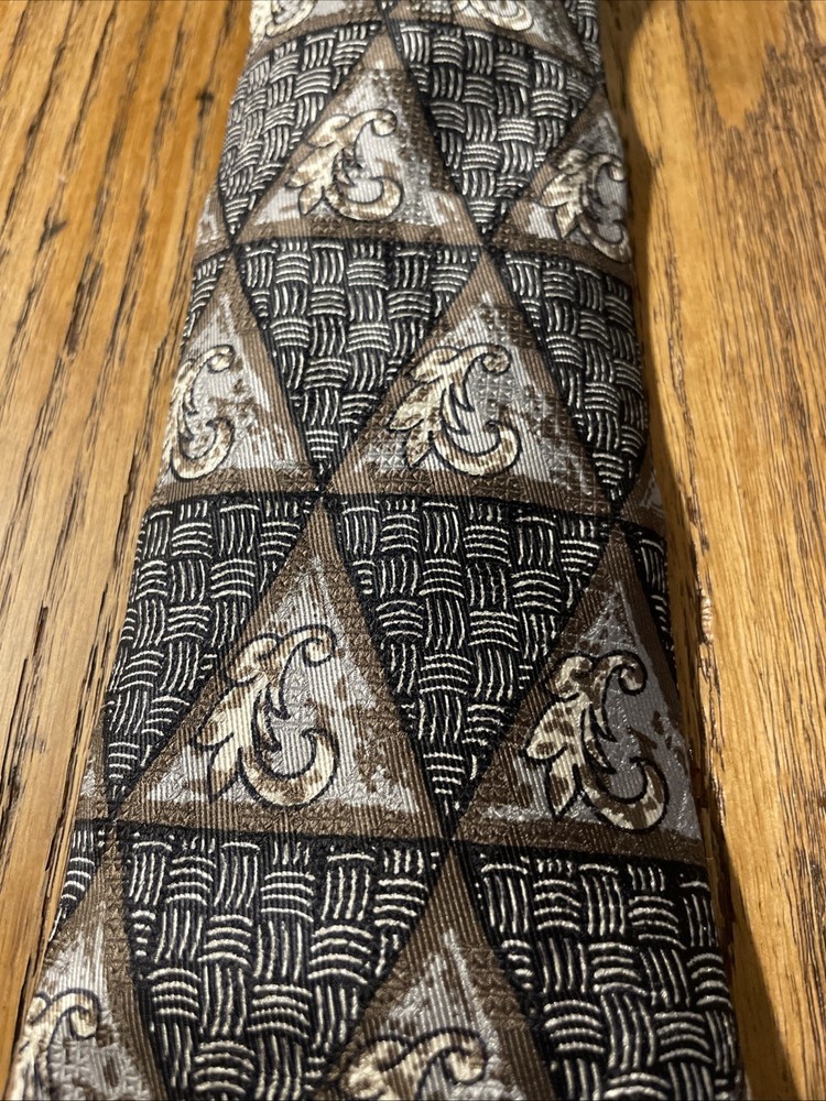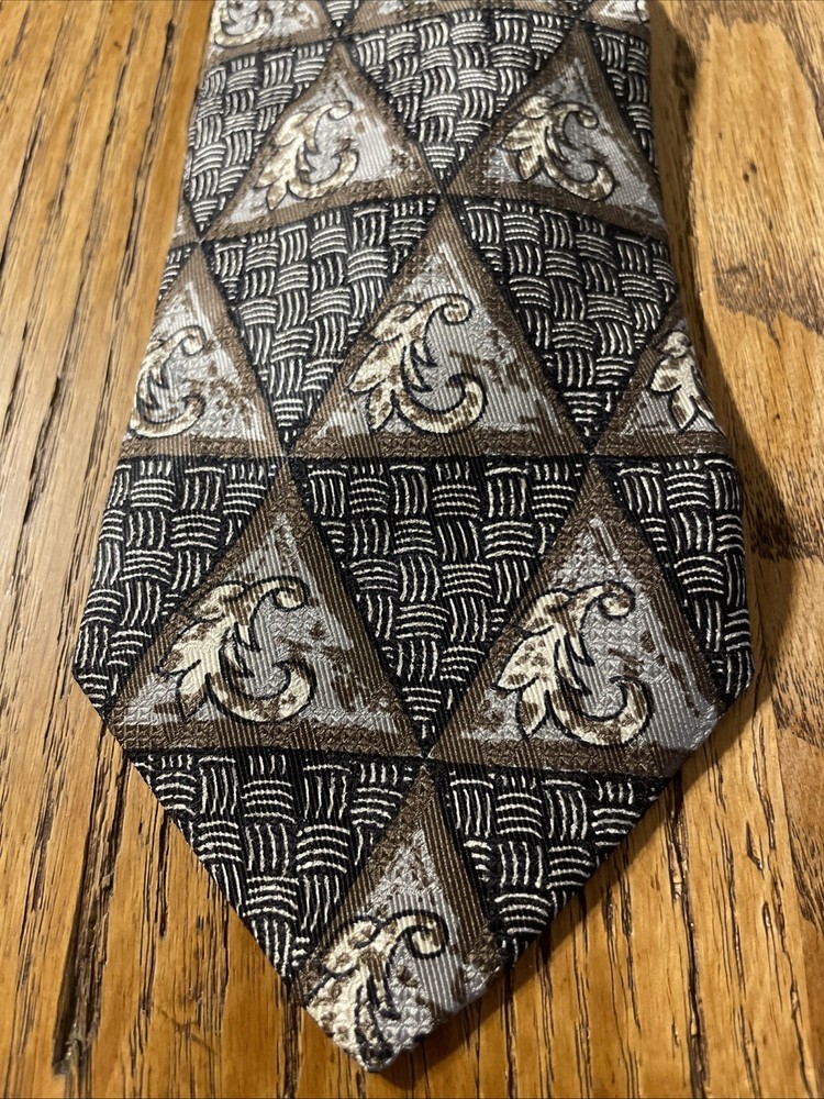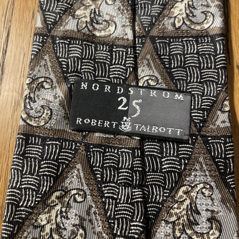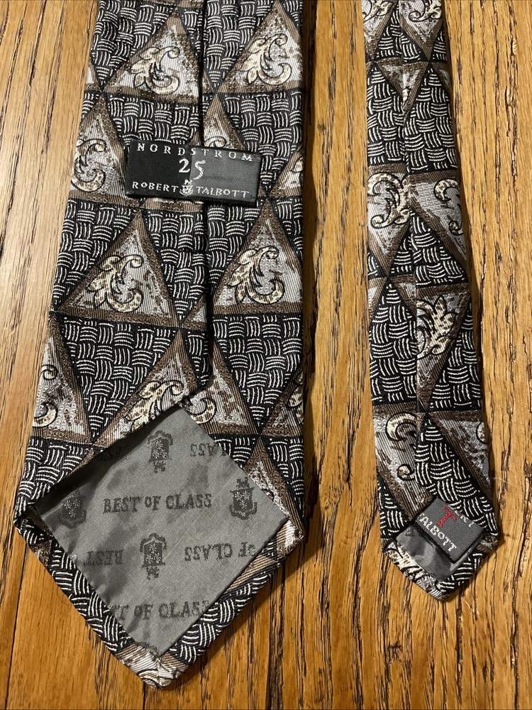 Elevate your wardrobe with the sophisticated charm of a vintage Robert Talbott Best Of Class silk tie. Featuring a bold geometric pattern, this multicolor designer tie is a testament to classic style with a preppy twist. Hand-sewn in the United States, it's a remarkable piece that speaks to the craftsmanship and attention to detail synonymous with the brand. The tie is made from 100% silk, offering a luxurious feel and a quality that's evident in every knot. Its classic width ensures a timeless look that pairs seamlessly with a variety of suit styles. Whether you're dressing up for a special occasion or adding a touch of elegance to your everyday attire, this Robert Talbott tie is a versatile addition to any men's collection.