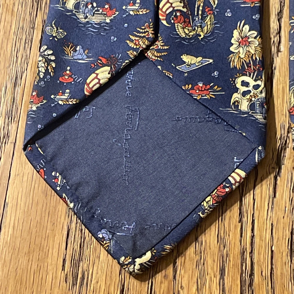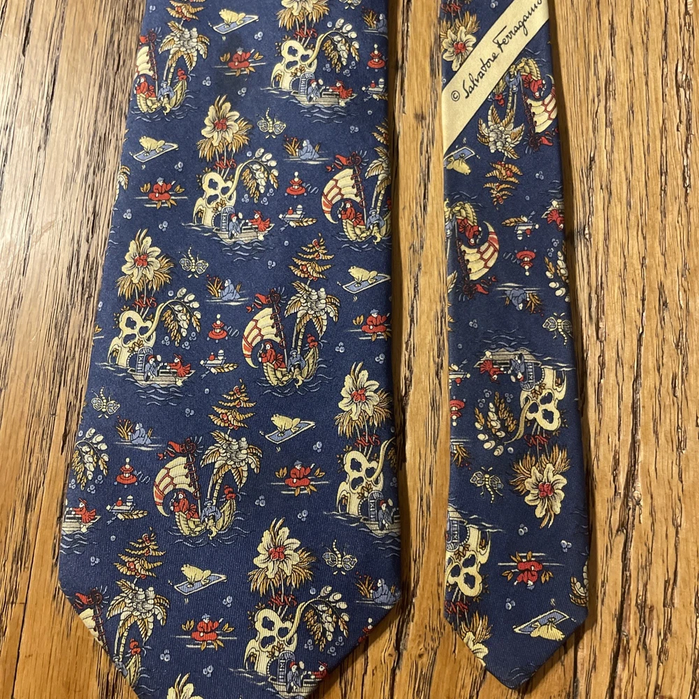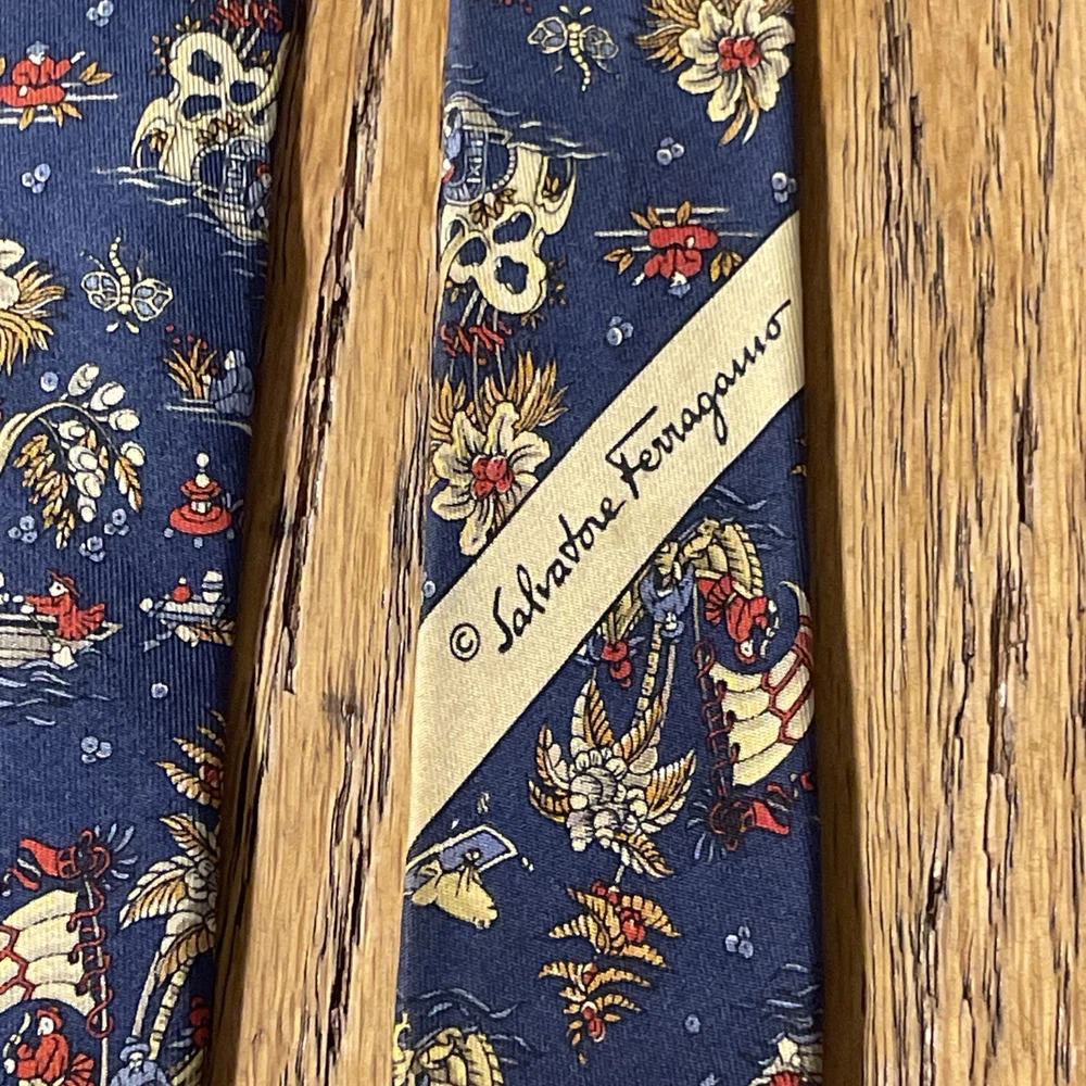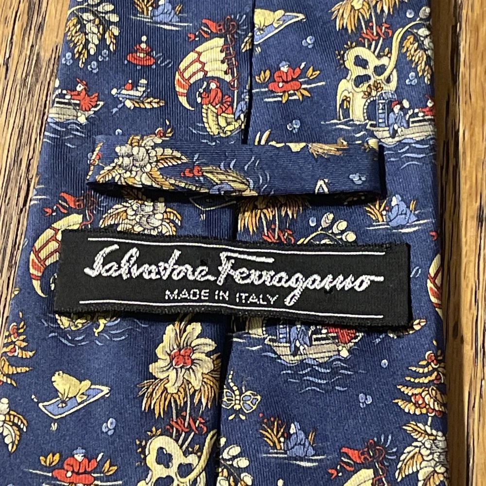 The Vintage EUC Salvatore Ferragamo Silk Abstract Eastern Tie Necktie is a designer accessory made in Italy. This necktie features an abstract tiny Eastern theme pattern, crafted from 100% silk satin fabric. The classic tie is designed for men and is a stylish addition to any preppy or designer-themed outfit. With its vintage appeal and high-quality construction, this Salvatore Ferragamo tie exudes sophistication and elegance.