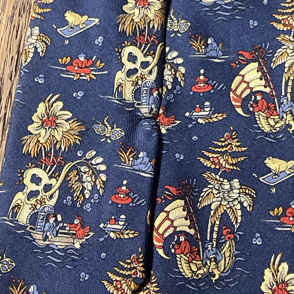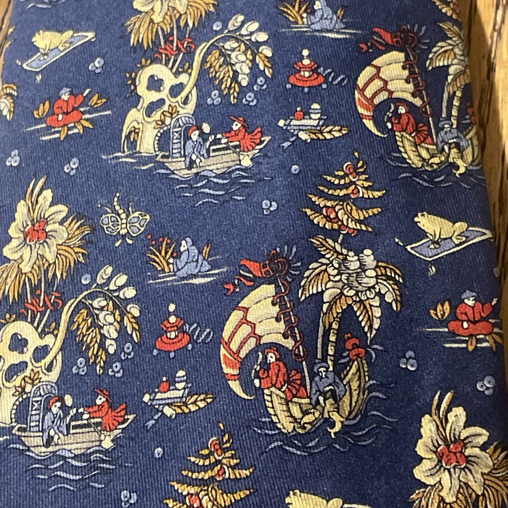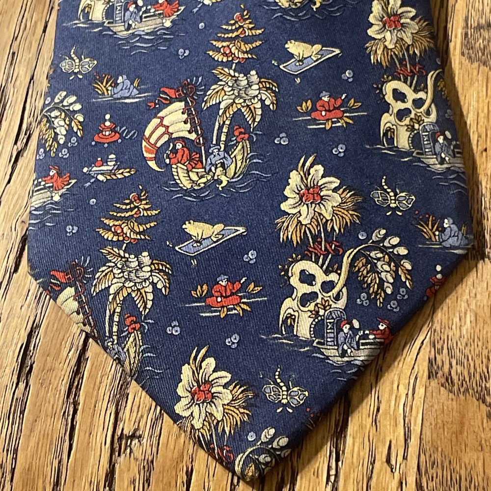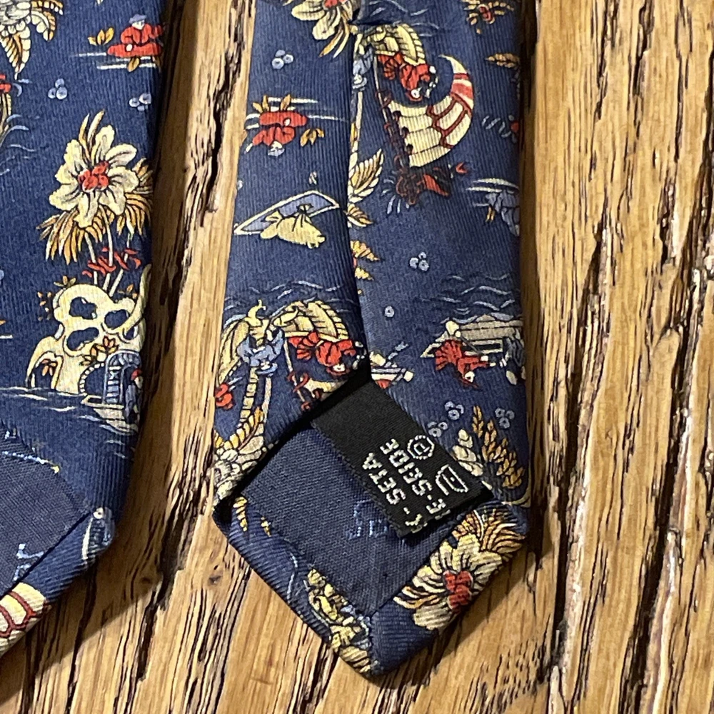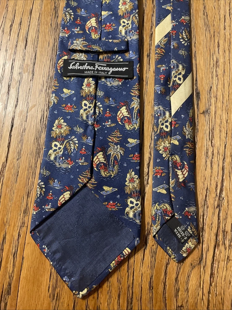The Vintage EUC Salvatore Ferragamo Silk Abstract Eastern Tie Necktie is a designer accessory made in Italy. This necktie features an abstract tiny Eastern theme pattern, crafted from 100% silk satin fabric. The classic tie is designed for men and is a stylish addition to any preppy or designer-themed outfit. With its vintage appeal and high-quality construction, this Salvatore Ferragamo tie exudes sophistication and elegance.