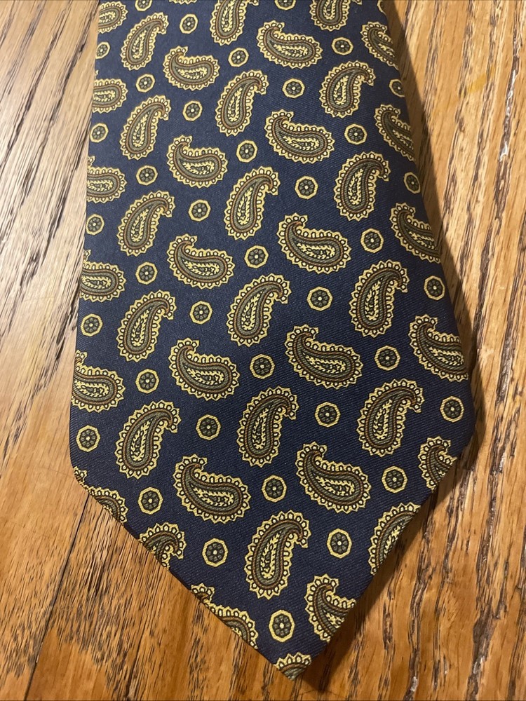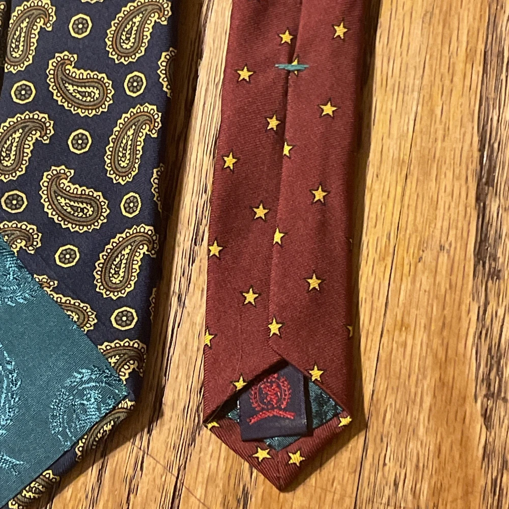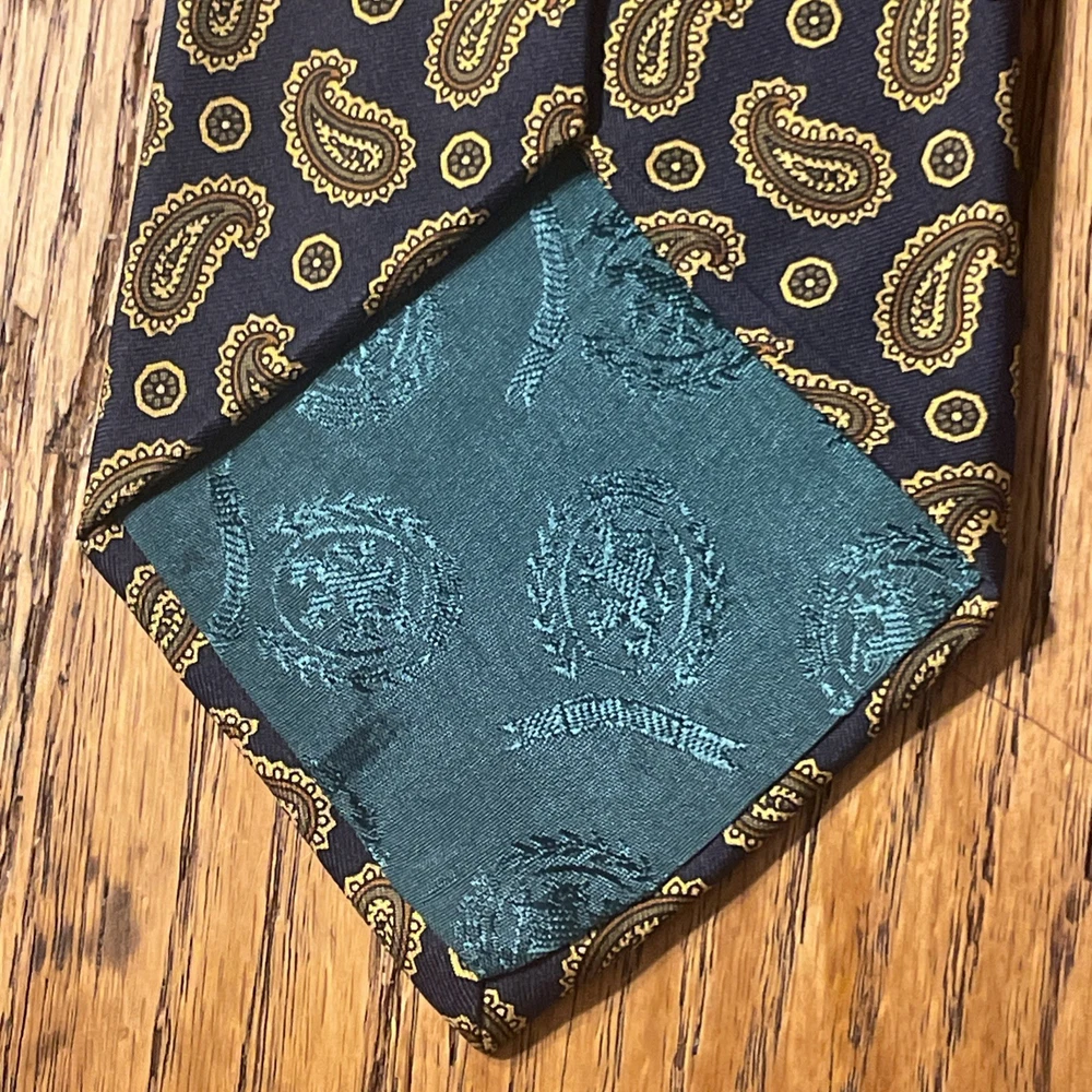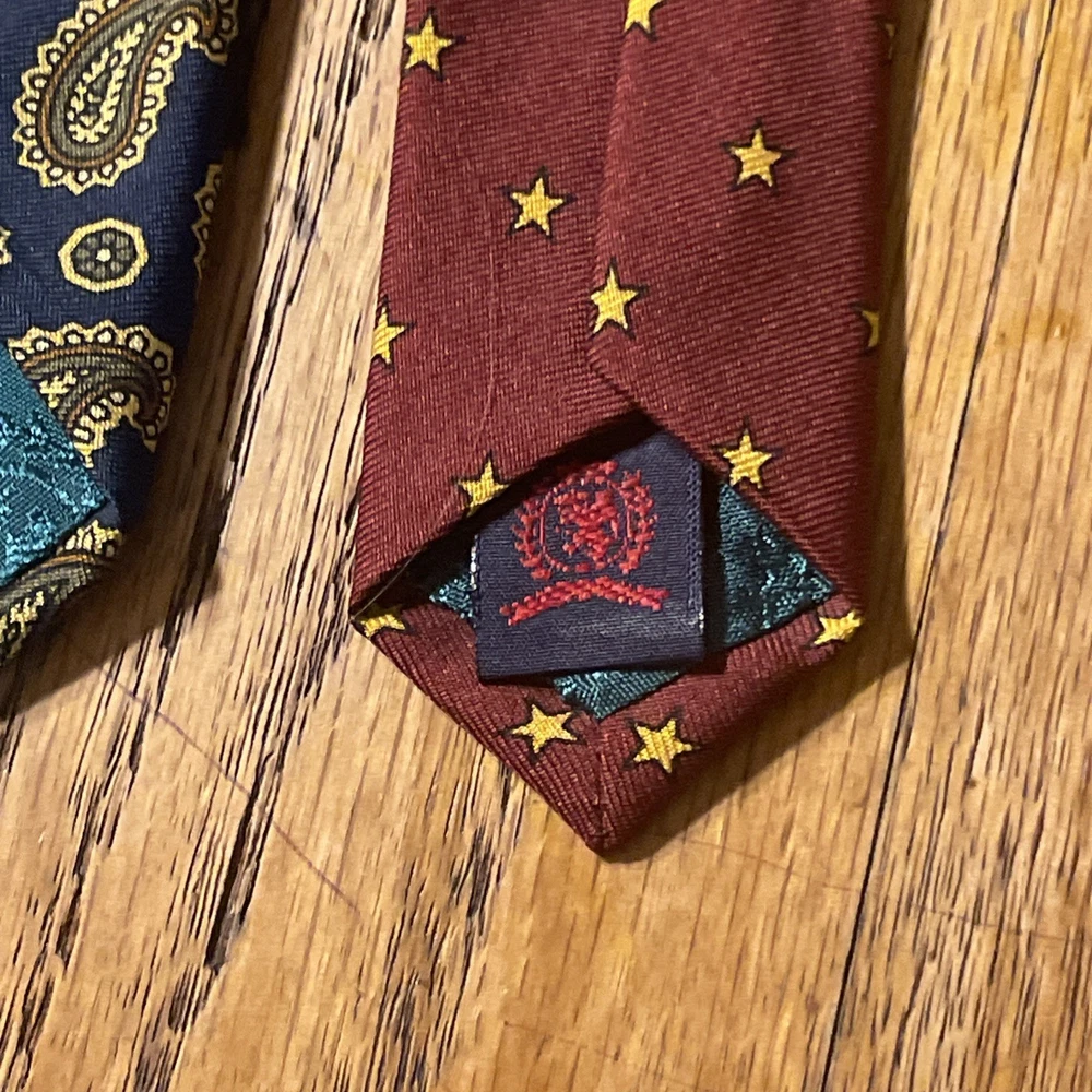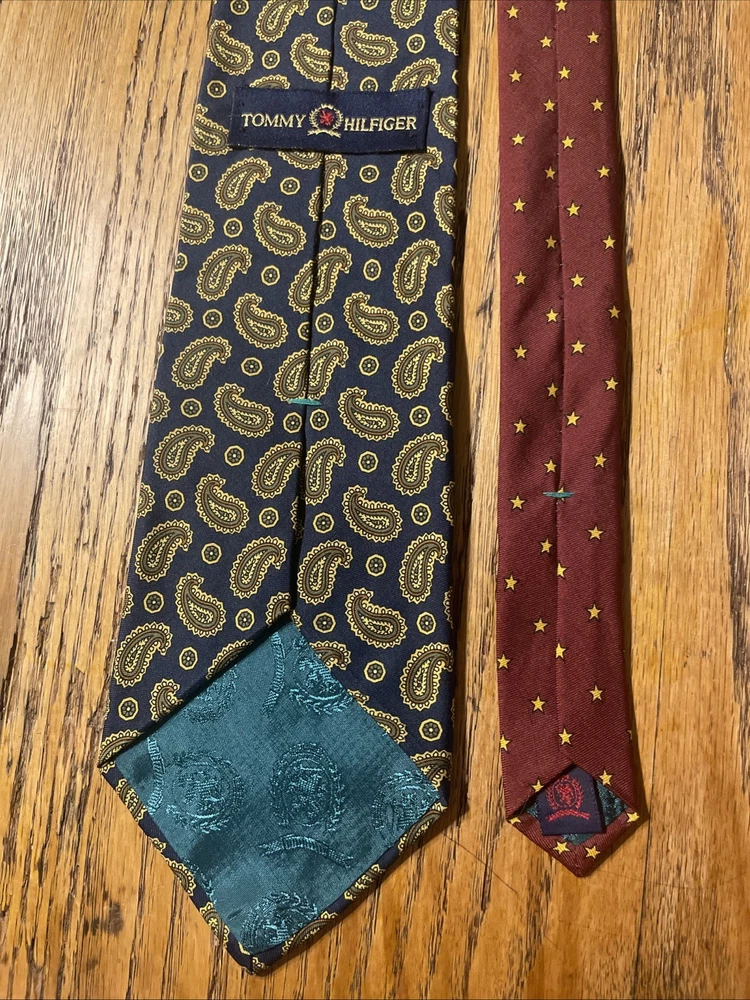 This Vintage EUC Tommy Hilfiger Silk Paisley & Stars Tie is a designer necktie made in the USA. The tie features a classic multicolor paisley pattern with stars, perfect for a preppy and sophisticated look. Made from luxurious silk satin fabric, this tie exudes a timeless and stylish charm. Ideal for men who appreciate high-quality accessories with a vintage touch, this Tommy Hilfiger necktie is a timeless addition to any wardrobe.