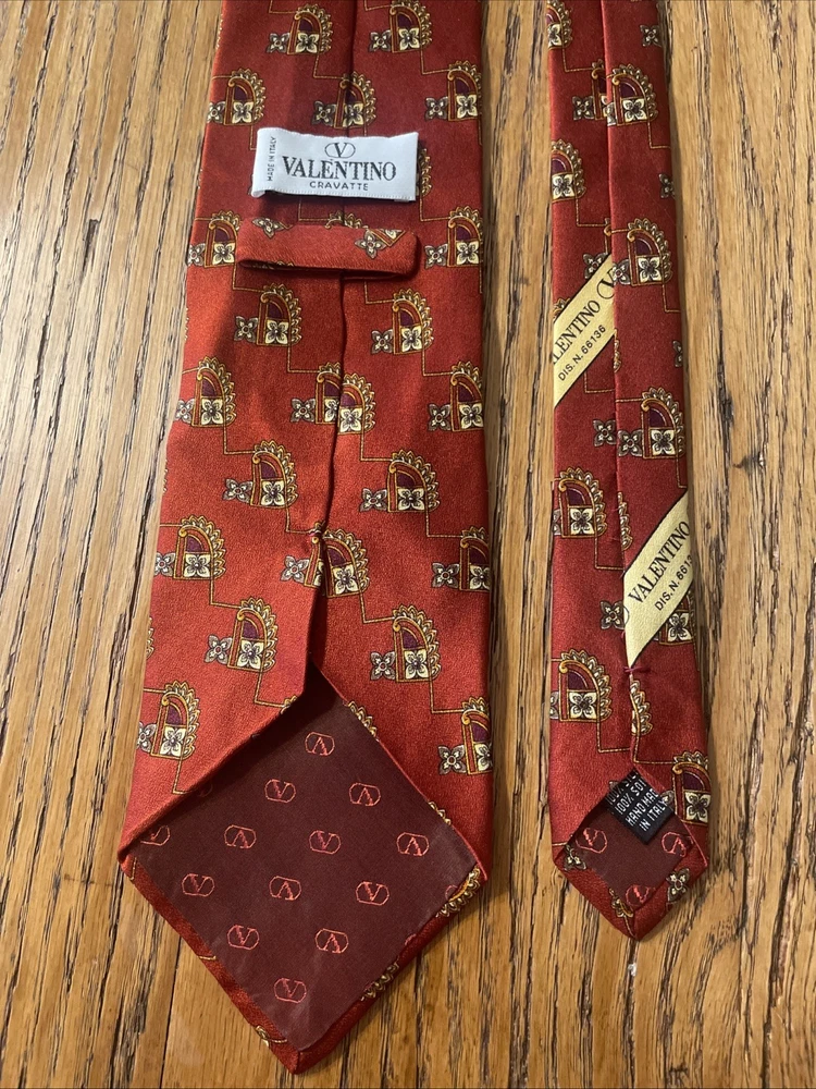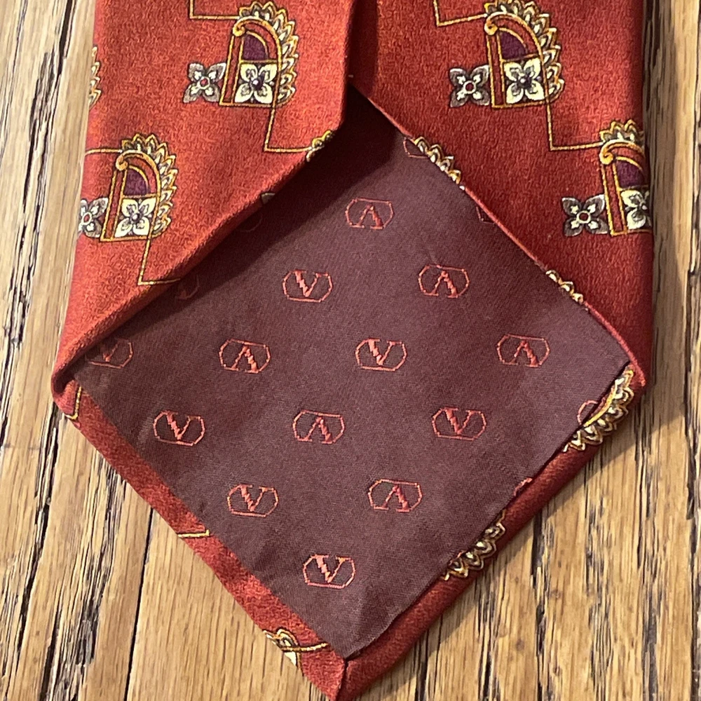 This Vintage Valentino Cravatte Silk Geometric Floral Tie is a luxurious and stylish accessory for men, made in Italy with 100% silk satin fabric. The tie features a geometric floral pattern in multicolor, exuding a preppy and designer style. With a classic width, this tie is perfect for adding a touch of sophistication to any outfit, making it a timeless piece for any man's wardrobe.