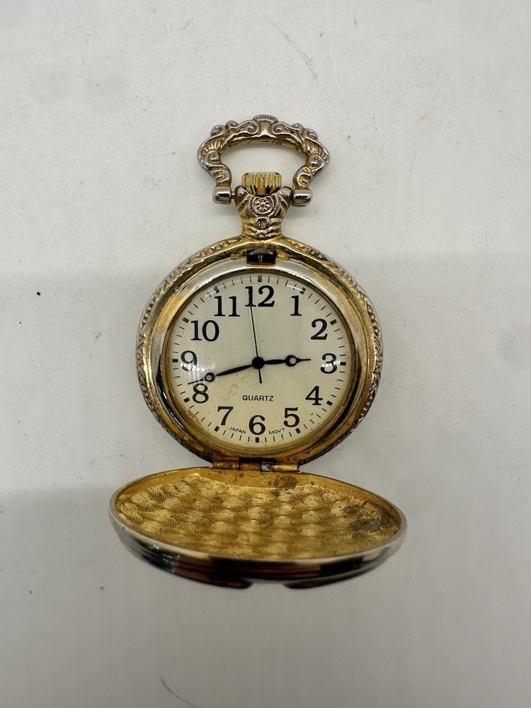 Vintage Watch-It Eagle Pocket Watch Ornate Gold Tone Quartz untested