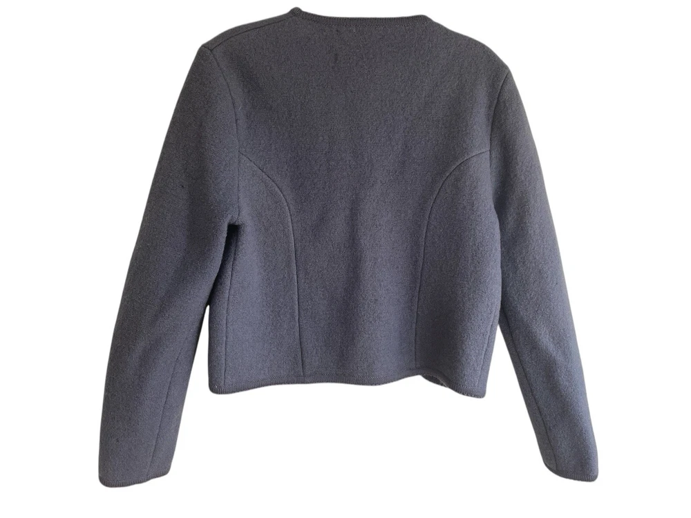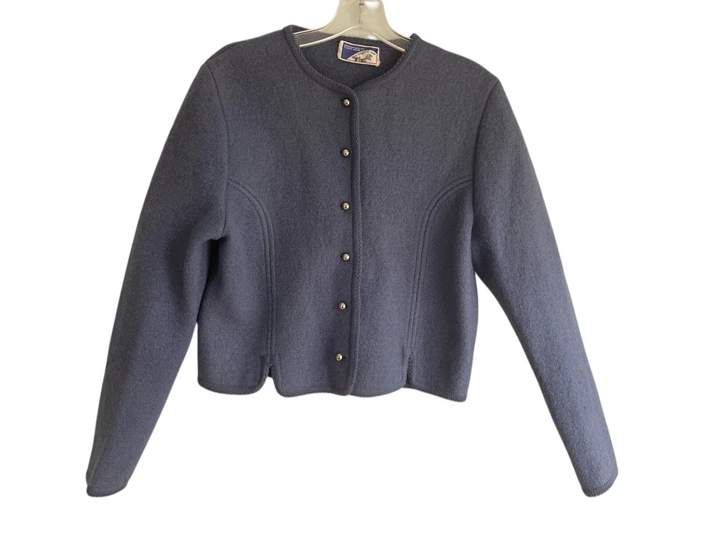 Vintage Eagles Eye Sweater Women Blue Boiled Wool Cardigan Button Down 12 Medium