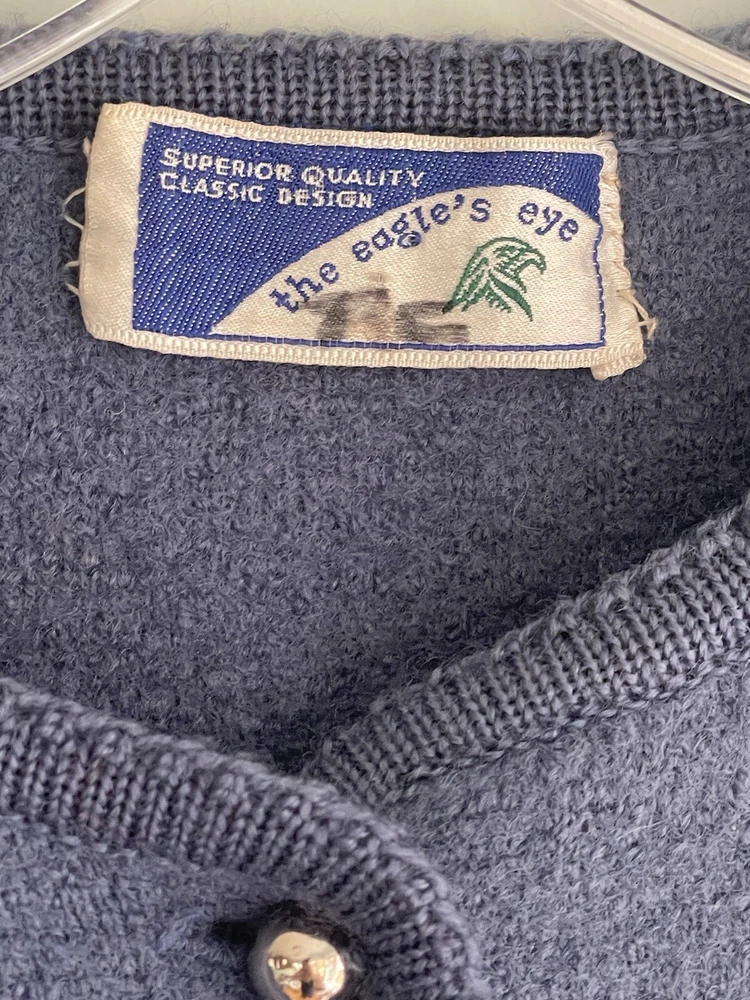 Season: Fall, Spring, Winter Country/Region of Manufacture: Hong Kong Style: Cardigan Occasion: Business, Casual, Party/Cocktail Theme: 90s Accents: Button Neckline: Crew Neck Size: 12 Fabric Type: Knit Vintage: Yes Pattern: Solid Sleeve Length: Long Sleeve Color: Blue Department: Women Fit: Regular Material: Wool Type: Sweater Brand: Eagles Eye Size Type: Regular