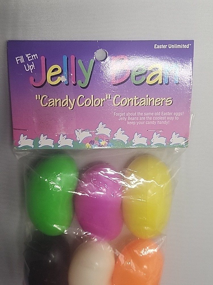 The Vintage Easter Unlimited Jelly Bean Shape Candy Color Containers are a nostalgic addition to any Easter collection. Made of plastic and featuring a multicolor design, these containers were manufactured in 2001 in China. Perfect for storing small treats or as a decorative piece for the Easter season, these candy containers are a unique and fun find for collectors of holiday memorabilia.
