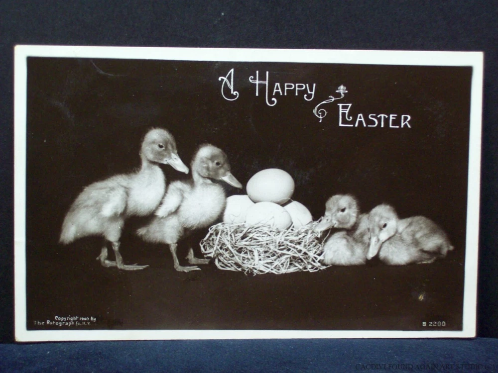 Vintage Easter Real Photo Postcard Ducklings Duck Egg Nest Rotograph CO RPPC Old DESCRIPTION: This listing is for the preowned Antique Old Vintage Little Easter Ducklings Duck Nest Eggs Real Photo Postcard Rotograph CO RPPC Old Holiday Post card pictured only. The postcard features a view of four little Easter ducklings with a nest filled with eggs . MESSAGE: Yes CAPTION: A Happy Easter PUBLISHER: Rotograph Co STAMP: No STAMP BOX; Yes CANCEL: No Review the photos closely as they are a necessary essential part of the description. Please take in consideration that I sell preowned antique and collectible items that are rarely pristine. This postcard may show some form of use with wear due to age, it is as found. The corners are slightly bumped. This postcard is an almond color with few spots and old paper stuck to it. Due to variations between computers, color may vary. If you have any questions or concerns, please a message me through eBay . See my other listings for more great items! All shipments start at First Class Package Rate. This rate is higher than First Class Envelope but it allows me to use extra packing material and safely ship your item quickly. Items that are 250.00 or more will require signature confirmation. Free shipping via USPS First Class Package when shipped within the USA. Delivery time is a estimate that does not consider weather delays, holidays, or unexpected events. International purchasers it is your responsibility to be aware of any import or customs fees your country may apply to your incoming packages. I will not falsify information on the customs forms. First Class Package International rate can be expensive. Please click on to the shipping and payment tab to use the international postage calculator. If you wish your item to be shipped Registered Mail, this will be an additional charge added to the postage rate. Thank you for looking! inkfrog terapeak