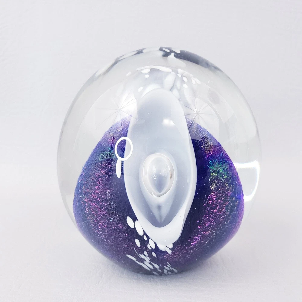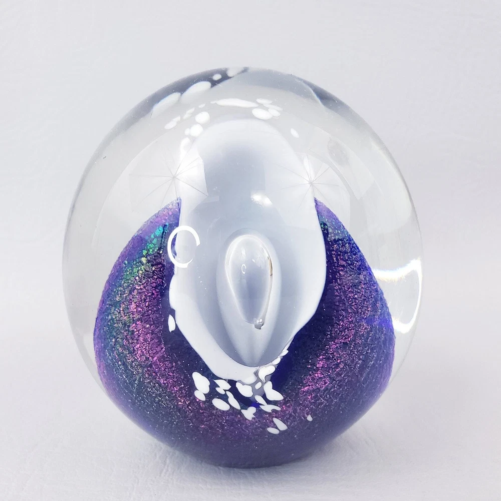 Vintage Eckholt 1990 Blue Iridescent Lily Paperweight Signed & Dated Excellent pre-owned condition free of any chips or cracks. Please see the listing photos. This is a very beautiful piece that sparkles in the light. Measures approximately 4"tall, 3" diameter. Thank you for looking!