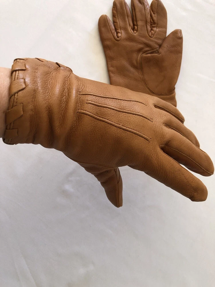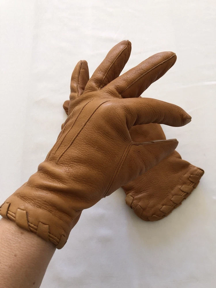 • Vintage Eddie Bauer Medium Women’s Brown DeerSkin Leather Gloves with Wool Liner • Soft leather. • Whip stitch edge • Wool liner. SEE PHOTOS! There is an area I marked with the liner. A small hole. Inside of glove. • Western, cowgirl, elevated ranch. Classic gloves. ***** We are always glad to answer any questions. I will bundle shipping, message me. We ship daily Monday-Friday. During the holiday season we normally do 2 shipping runs per day, morning and afternoon, and we ship on Saturdays. Everything is packed to travel. We are currently downsizing our storeroom of vintage and other curated miscellanea in order to start fresh in summer of 2025. Please see my other listings in this category or other categories. All items are stored indoors, climate control, no smoking. Thank you for stopping by! ☺️ ***** BE ADVISED: When I bring in and process ANY TEXTILE including clothing, cloth purses, wool coats, vintage wool blankets, vintage quilts, afghans, fabric, anything that is a textile of any type, every item firstly goes directly into the freezer for 5 days. After that time, items that are not new with tags are carefully laundered for freshness and sanitation. Then line dried and steamed with 100% natural therapeutic grade lavender essential oil in distilled water. Items that are “NEW WITH TAGS” are also steamed with the same lavender essential oil in distilled water for freshness and sanitation. I want EVERY ITEM that I send to market to be clean and fresh for my clients. Lavender, at times, can be a powerful scent for some. I prefer a natural lavender to the chemical spray that is far too pungent and that can also ruin vintage items. I take great care in the textiles that I provide to my clients and I would never want any weirdness to be in the textiles, so I take the time to be sure all items are clean and sanitized and free an any possible contaminant. All items are carefully stored indoors, climate controlled, no smoking, no cats. Thank you for taking the time to visit my store. TLBD 💗