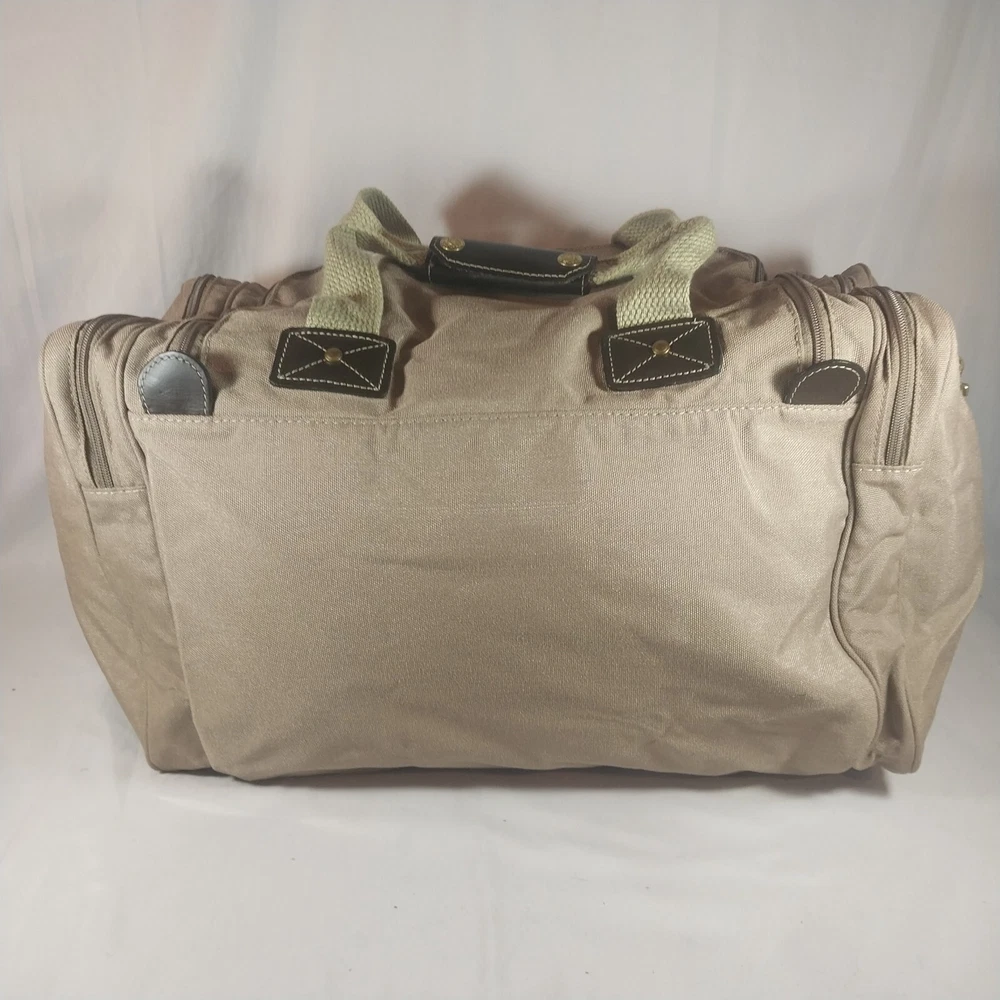 This vintage Eddie Bauer duffle bag is a must-have for any collector or outdoor enthusiast. Made from durable canvas material and featuring a solid beige color, this bag is both stylish and practical. The bag has a size of 18 inches, making it perfect for weekend getaways or camping trips. Not only is this bag lightweight and has a soft case, but it also comes with a unique Mulholland Brothers Ford and Eddie Buaer leather Thank You tag inside. The bag has never been used and is in excellent condition, ready for its next adventure.