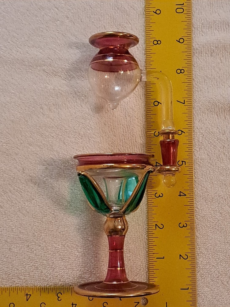 This Vintage Egyptian Hand Blown Glass Oil Burner is a unique and handmade piece that adds a touch of elegance to any space. The colorful glass material gives it a visually stunning appearance, while its intended use for aromatherapy makes it a functional and decorative item for adults' homes. With its brand being Egyptian, this oil burner brings a touch of authentic culture and craftsmanship to any room. I can combine shipping to save you some $$ 🥳